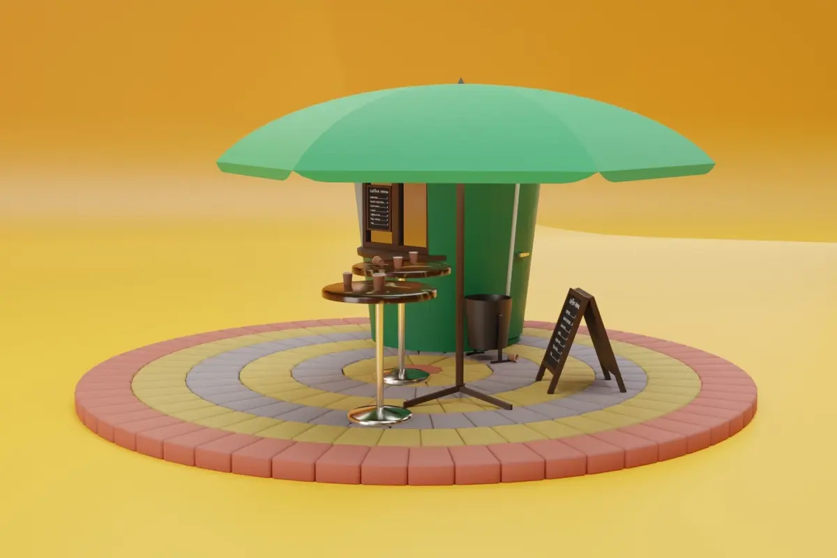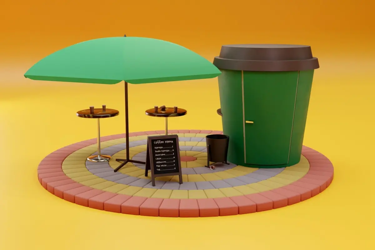 Coffee Cup Kiosk Scene 3D