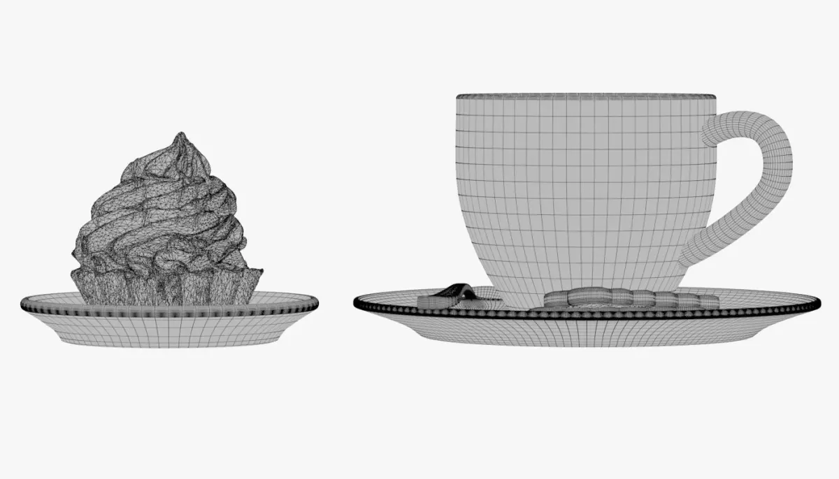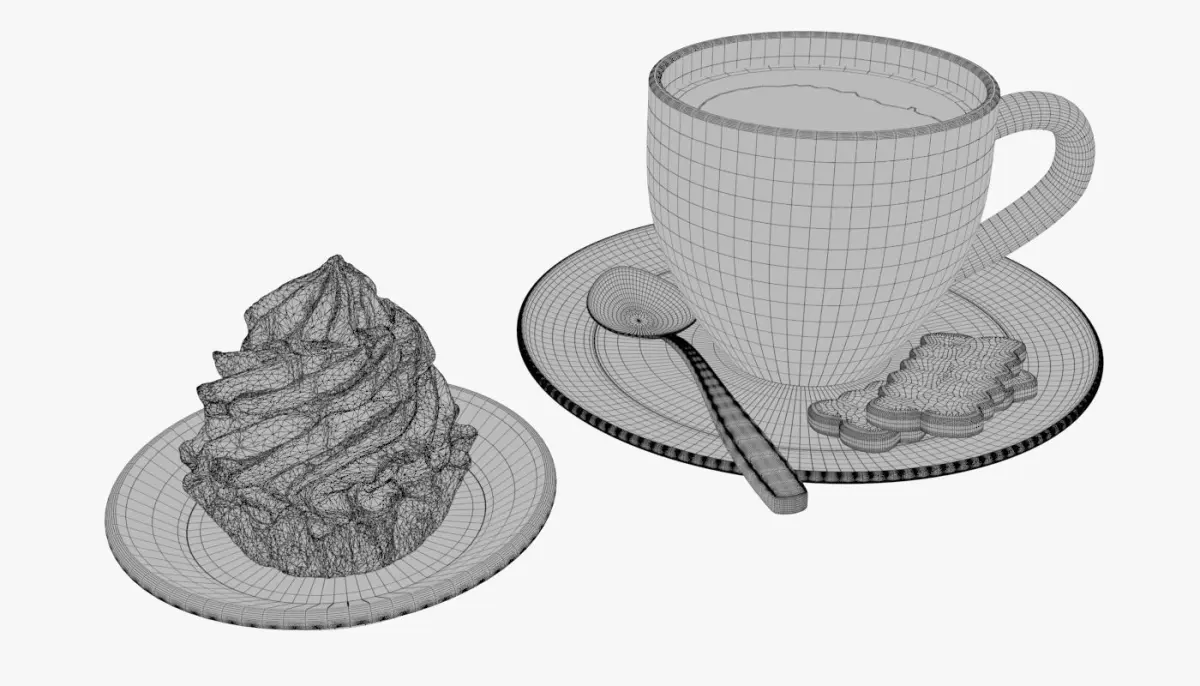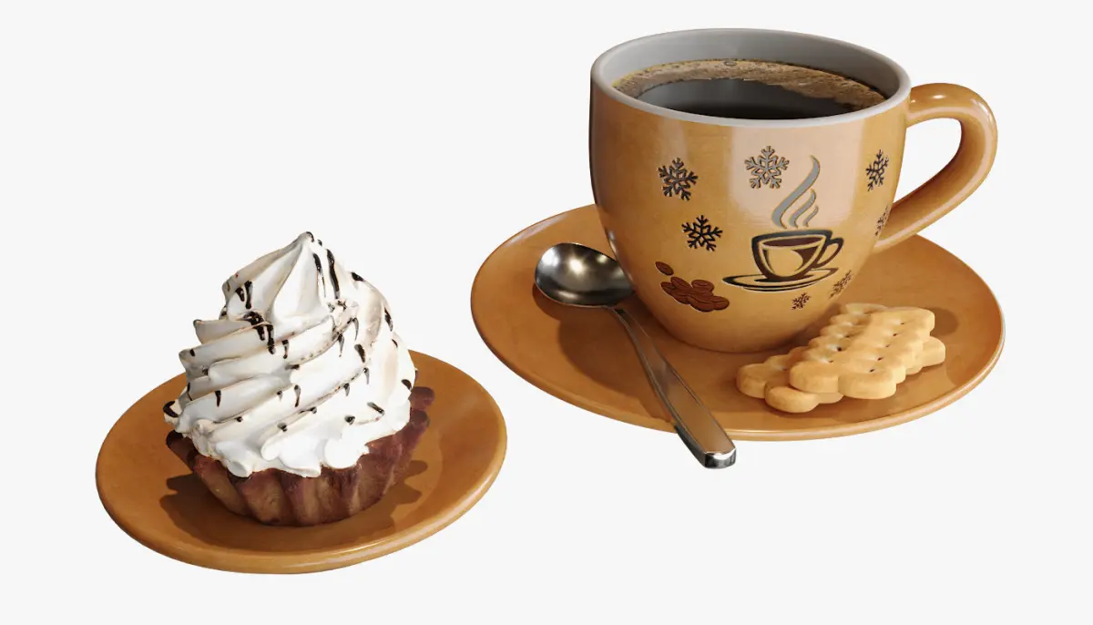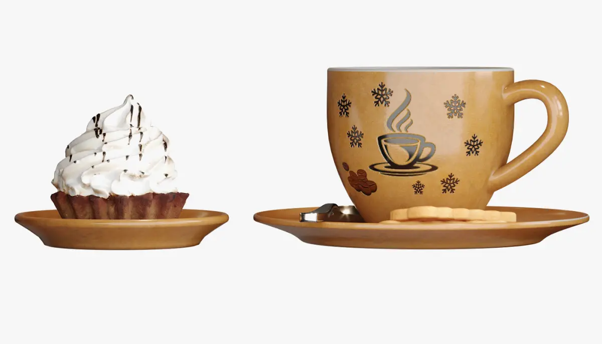 HomeCatalogCoffee cup with cake and cookies 3D model
