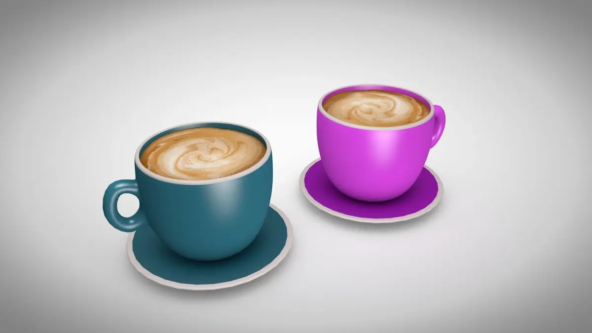 2 Coffee Cups - Blue and Pink; Low-poly, Subdivision-ready 3D Models.