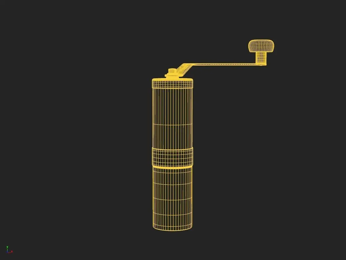 Hi-res 3D model of a coffee grinder modelled in maya. Preview images rendered with VRay.