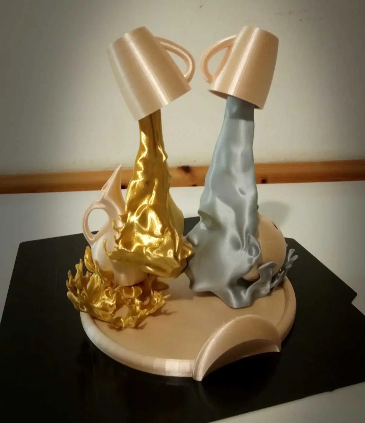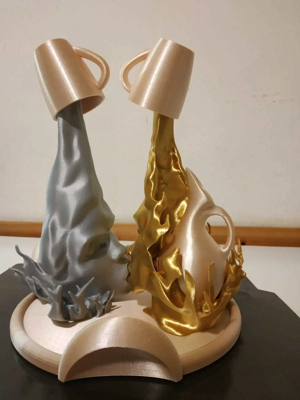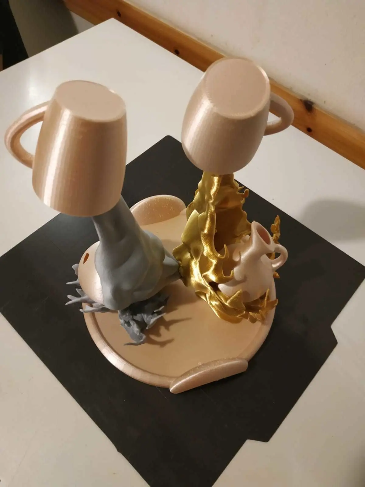 The cup is merely display. use ceramic cups, especially with hot coffee;)The printed pieces shown in the photos do not have any type of post production. Only the supports where present are removed.
