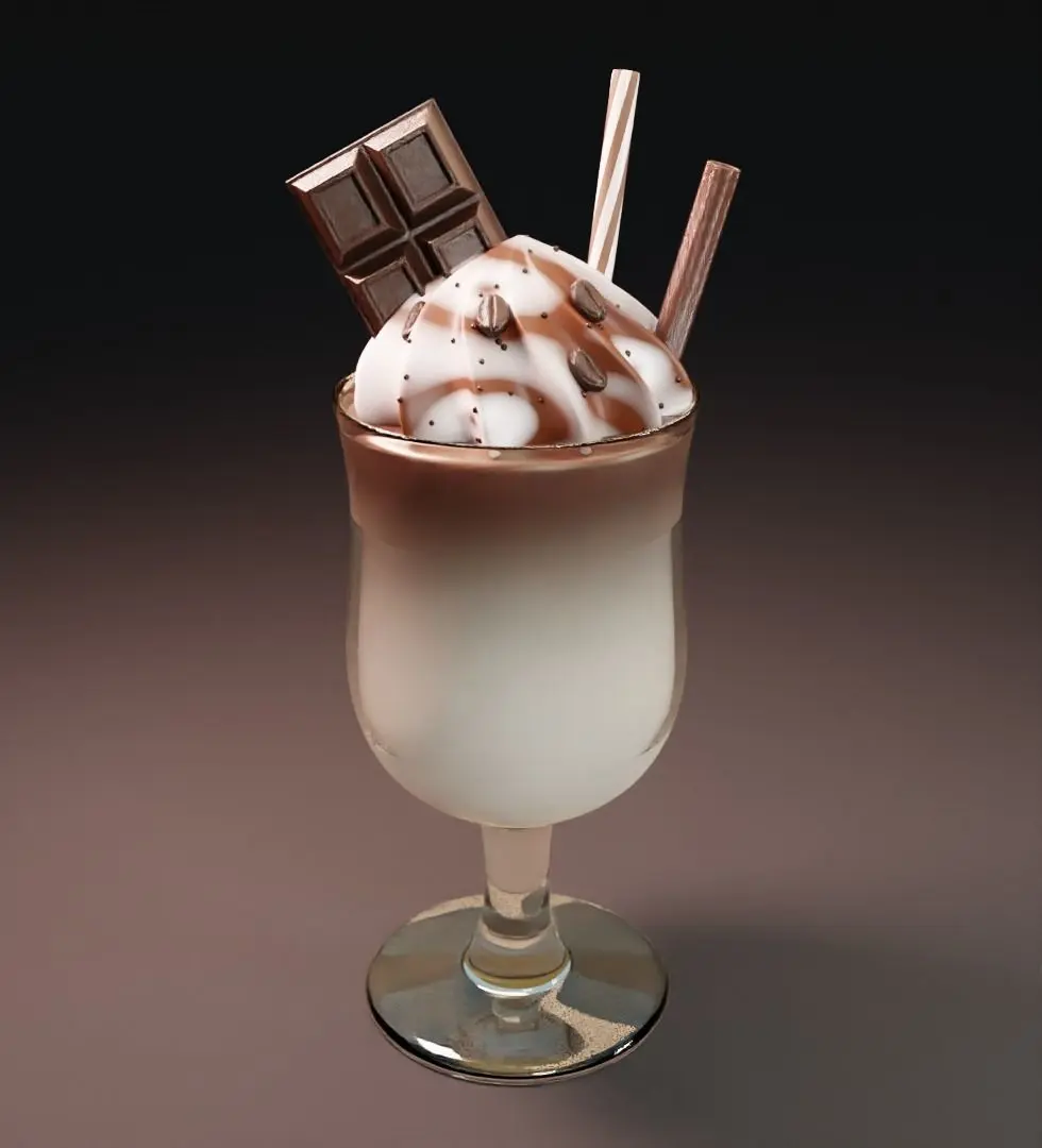 I am pleased to present to you a high polygonal 3D model of a coffee milkshake. The model itself is a milkshake model consisting of: A glass, a cocktail, cream, sprinkles, two straws, one made of chocolate and the other usually striped, a chocolate bar, seven coffee beans and sprinkles. It has six materials, the images of which you can see in the illustrations, this model is ideal for your projects, animation, games, renderings, advertising, videos, decorations, editing and so on.