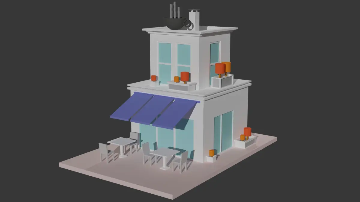 Low poly coffe, donut and pizza shop