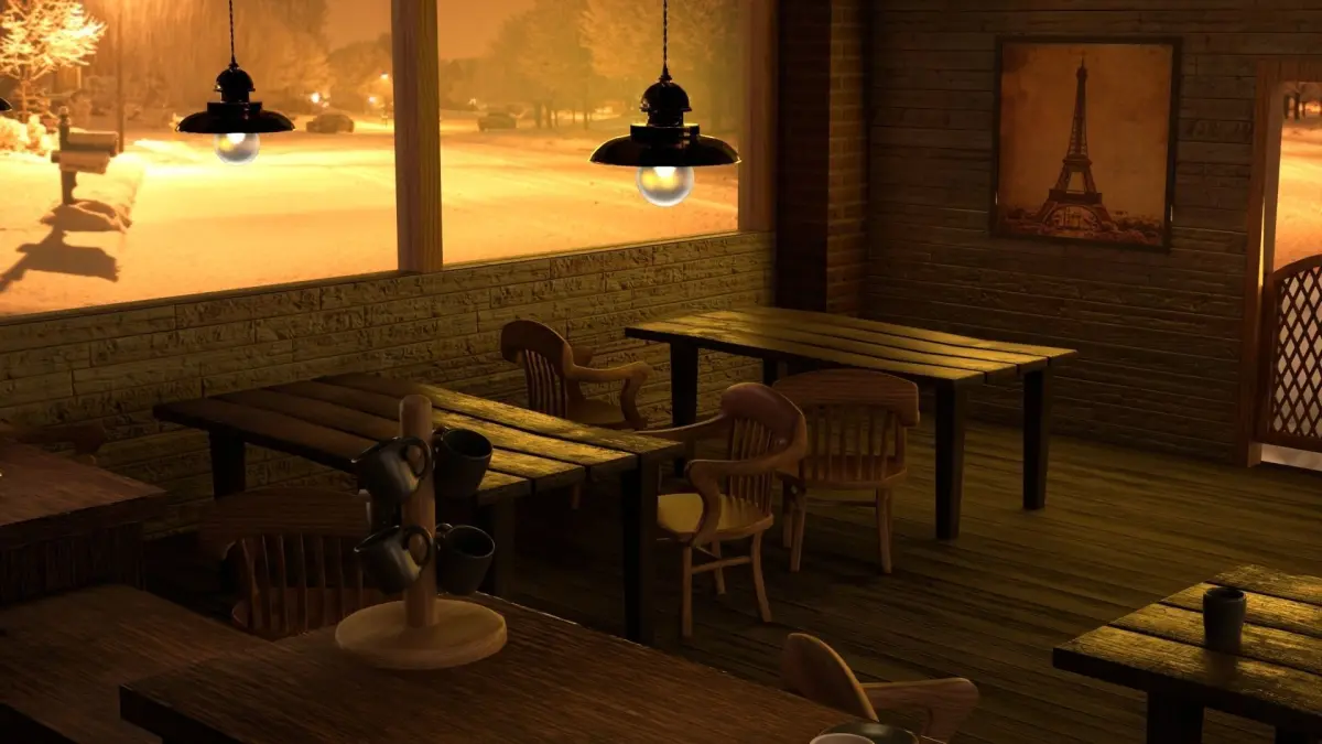 Ex perience the warmth of a coffee on a cold winter day in a jazz bar that offers a cozy atmosphere for jazz enthusiasts. Wooden tables and chairs support a warm environment and a comfortable experience. Indulge in jazz music that you will enjoy and unwind from the day's stress, feeling relaxed.