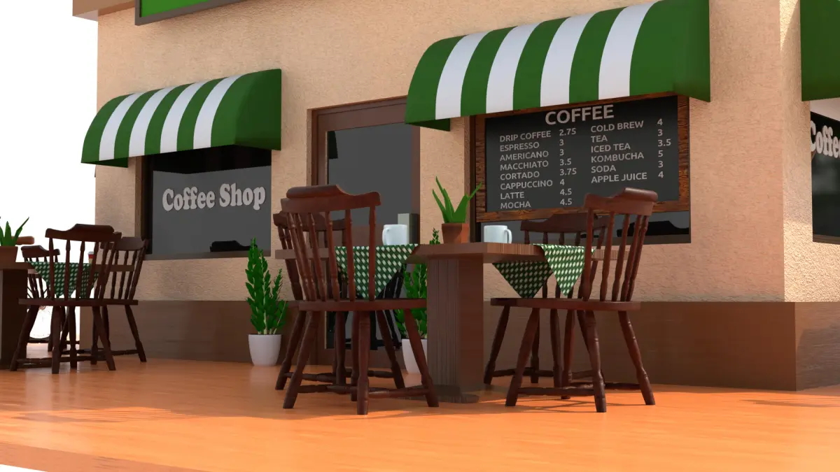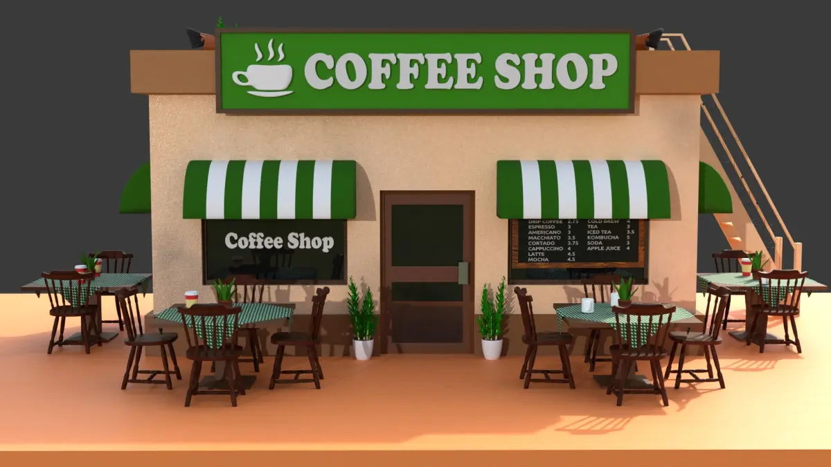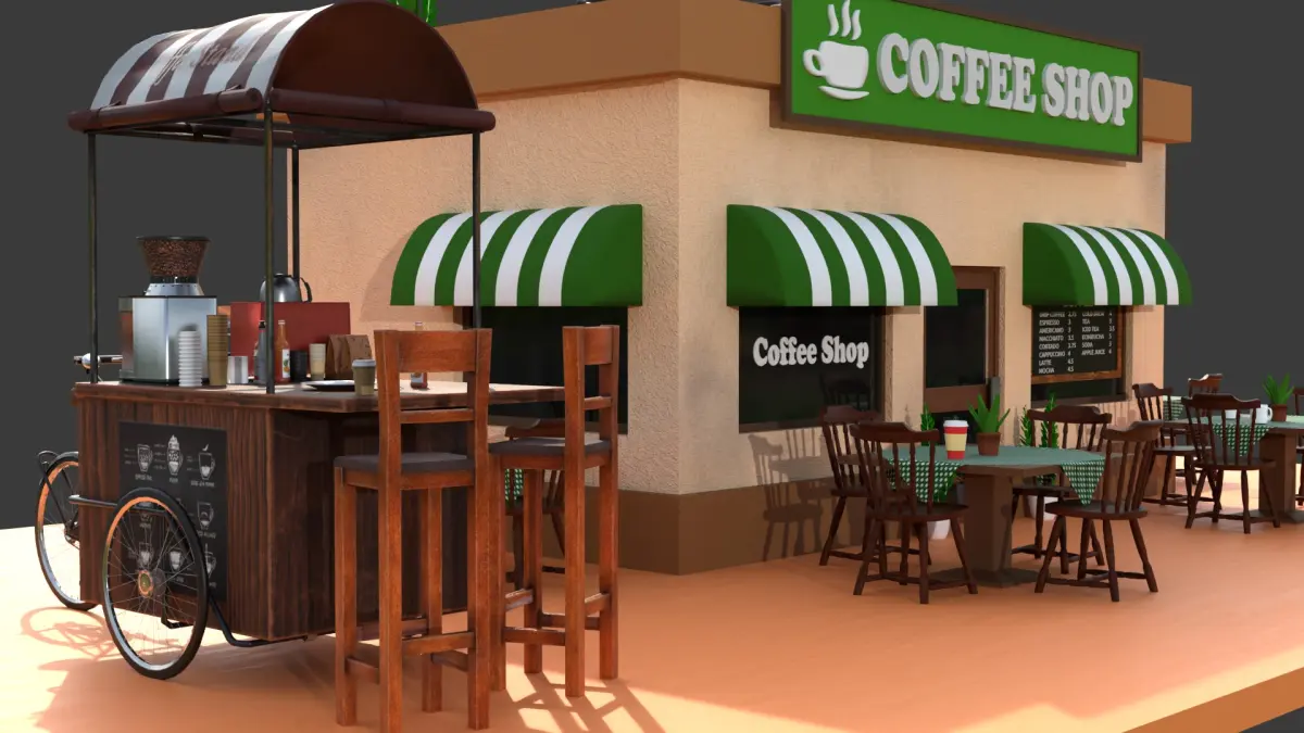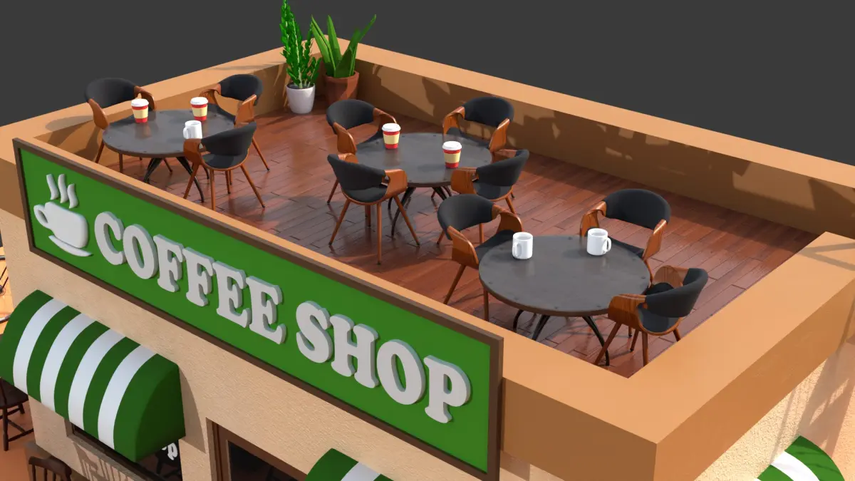 - This detailed 3D model of a coffee shop is meticulously crafted for versatility and realism, perfect for various applications including architectural visualization , virtual reality (VR), animation film environment , and game development.Created using Blender and Maya, this model offers high fidelity and seamless intergration into your projects.