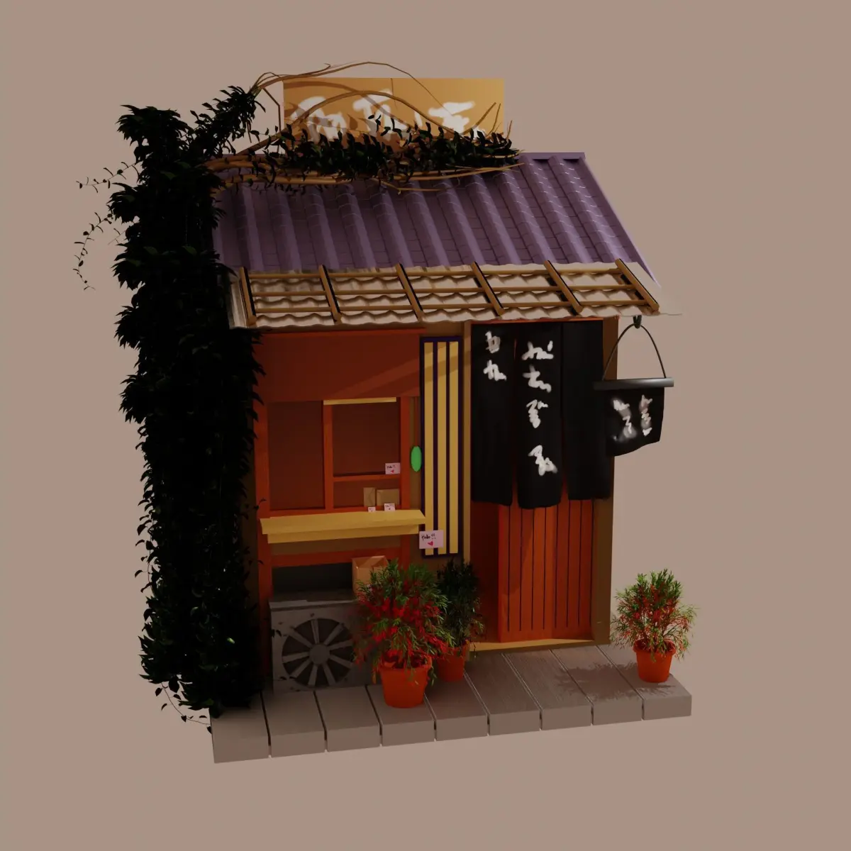 COUPONS: 2FC4C166CB7BHello! I appreciate that you liked my model. There is Coffee Shop Build Structure Post Tree Japanese Pavilions. Model includes PBR textures (Base_Color, Metallic, Roughness, Normal_Map,Emissive), so you can easily use this model in any software you want. Created in Blender 2.93. The pack include a mesh: