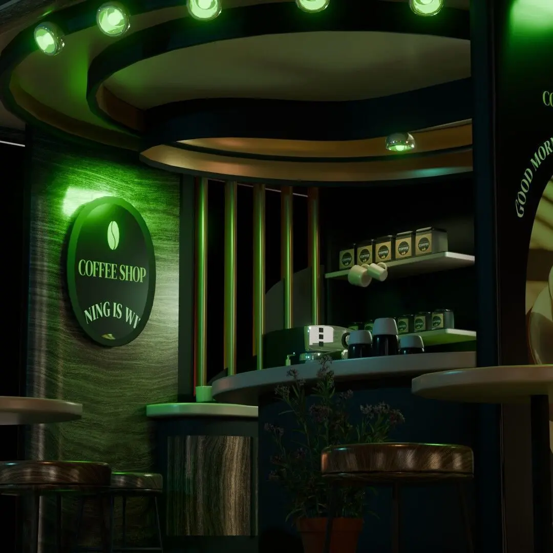 Design Concept: Indoor coffee shop booth design-combining the modern with a touch of warmth. This configuration provides intimate almost private booths, perfect for solitary reflection and one-on-one tete-a-tetes. Individual booths are orientated to realize maximum utilization of available space; it has also been designed as cozy and seclusive for clients.