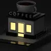 Stylized 3D model of a coffee shop in low-poly style, created in Blender. The model includes a detailed exterior of the building with illuminated windows, a “COFFEE” sign, decorative elements, and a coffee cup on the roof. Ideal for game projects, architectural visualization, or creating cozy urban scenes.
