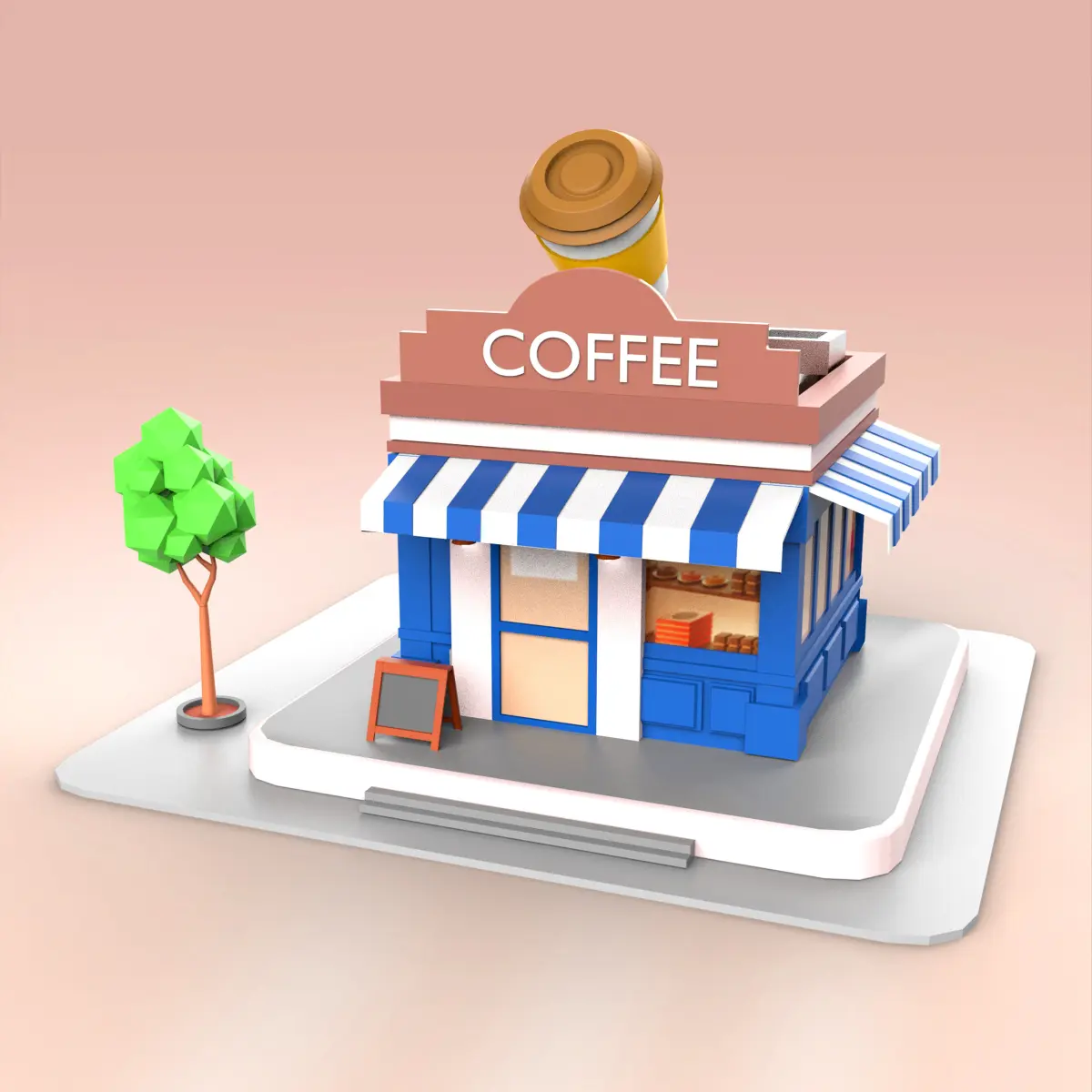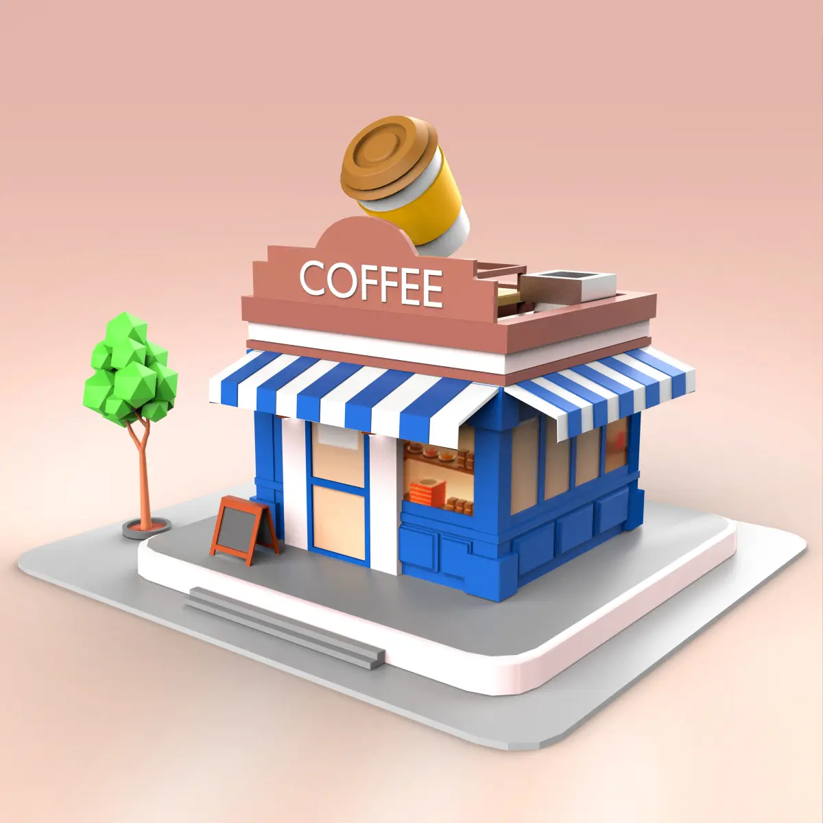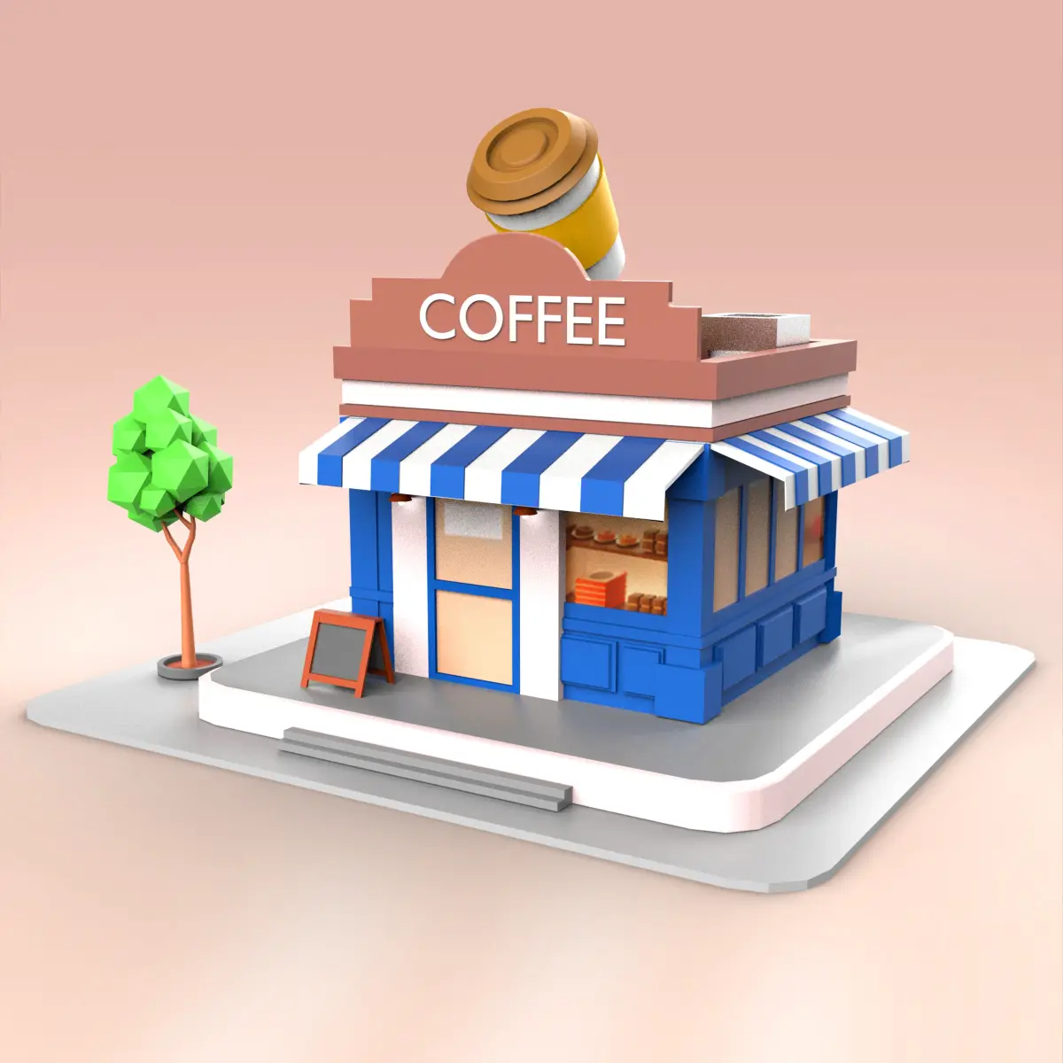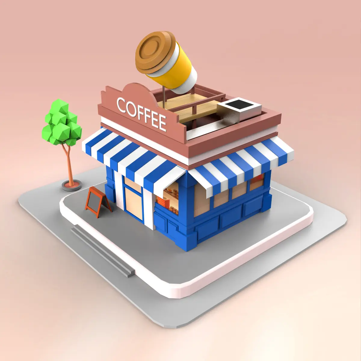 Coffee Shop Low-poly 3D model