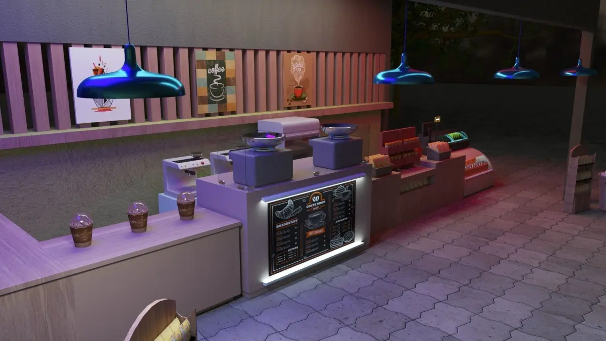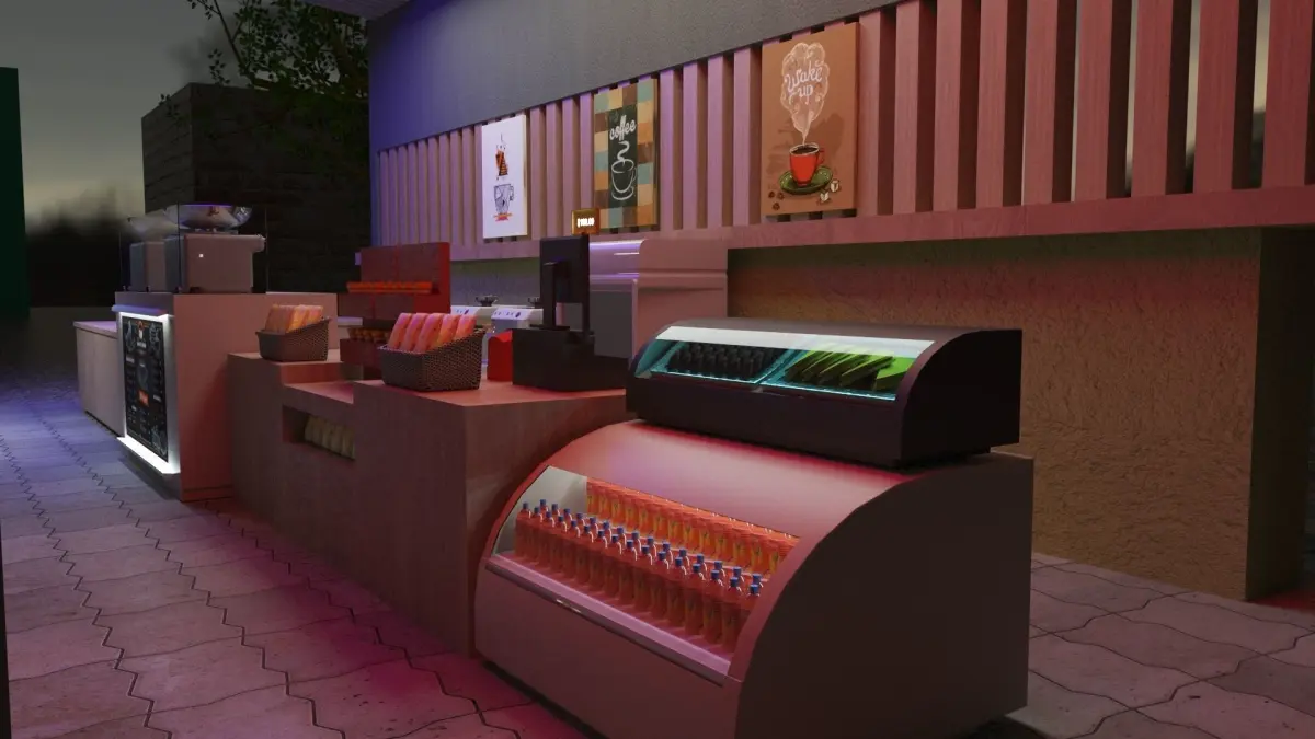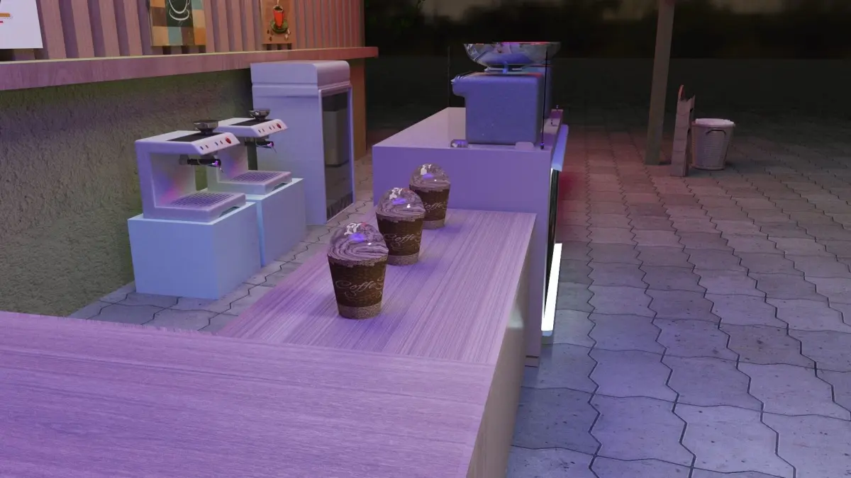 Coffee stall with Textures and rendering settings in 3ds max 2022 with vray advanced 5.20.00