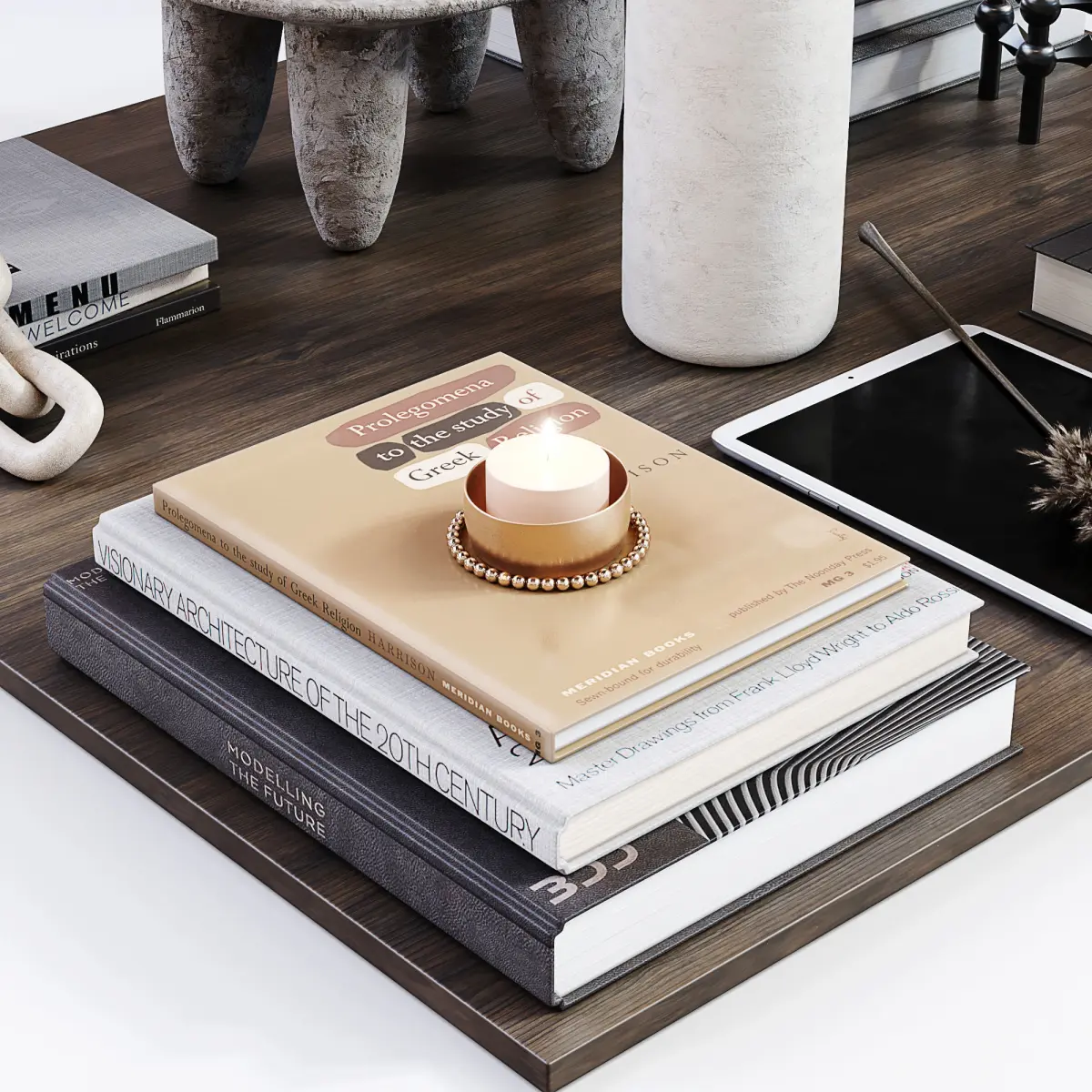 Coffee Table Decor Set———————————————High quality model Detailed enough for close up renders—————————————In the archive: 3Dmax 2012 (Vray + Corona) + OBJPolys: 578.424Verts: 651.766System units: mmThe models have a TurboSmooth modifier—————————————Have a nice render