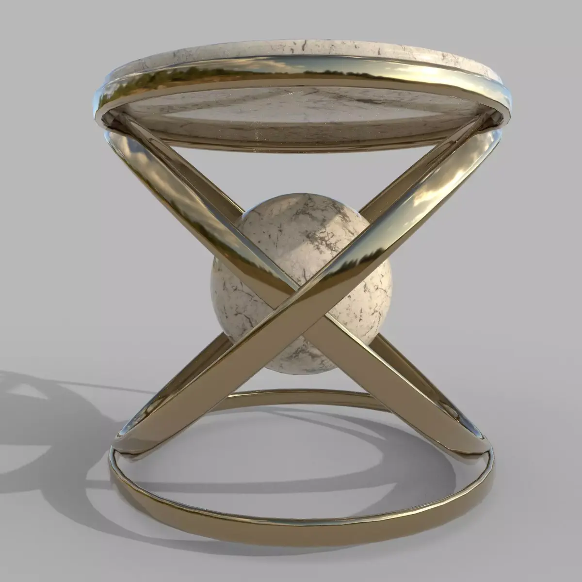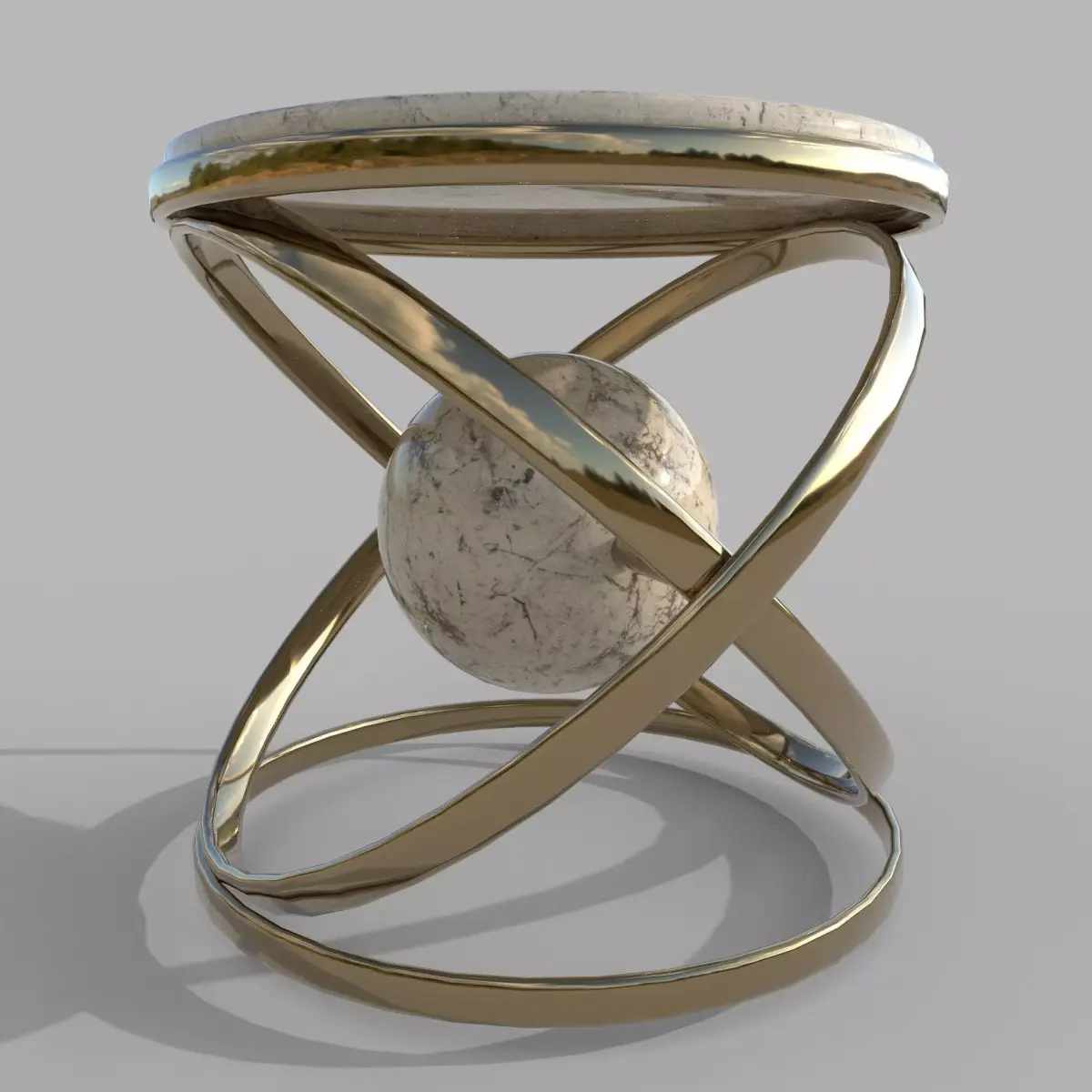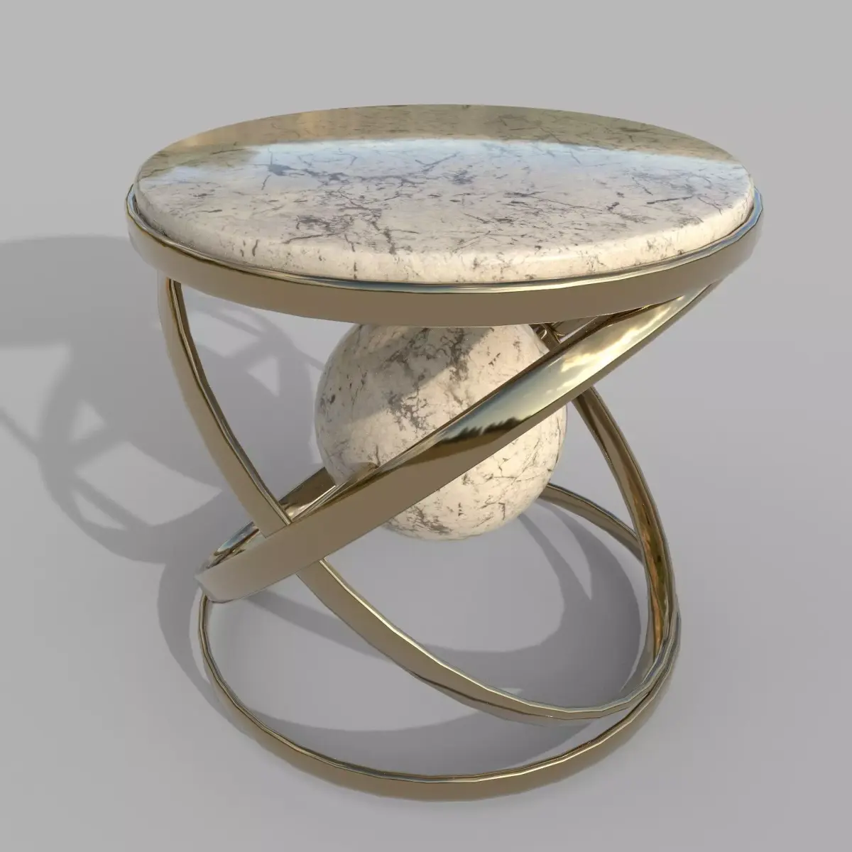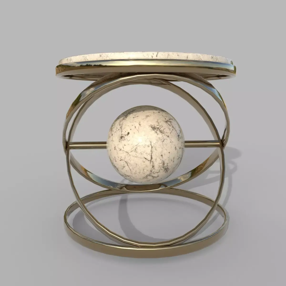 This elegant 3D model features a luxurious round side table with a marble top and central marble sphere, supported by curved golden metallic rings. Ideal for high-end interior visualizations, it’s optimized for rendering and real-time applications with clean geometry and refined materials.