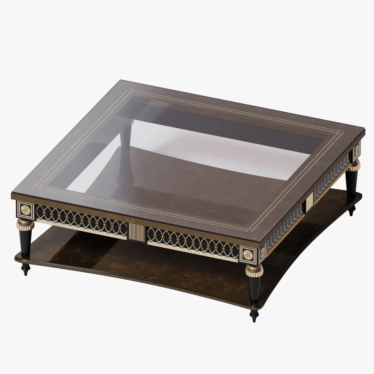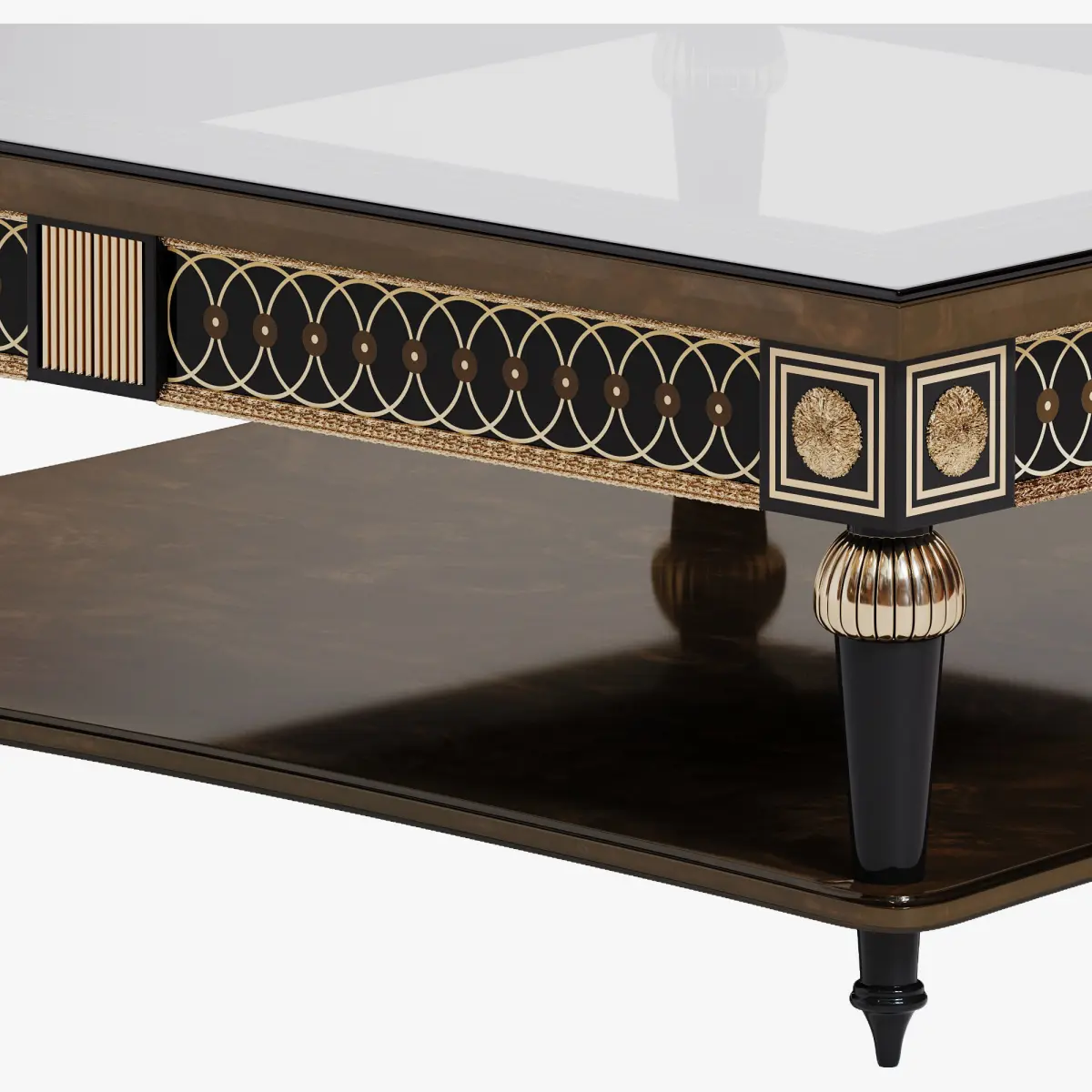 Coffee table from the NANTES collection by MARINER luxury.Hand carved wood, covered with gold.