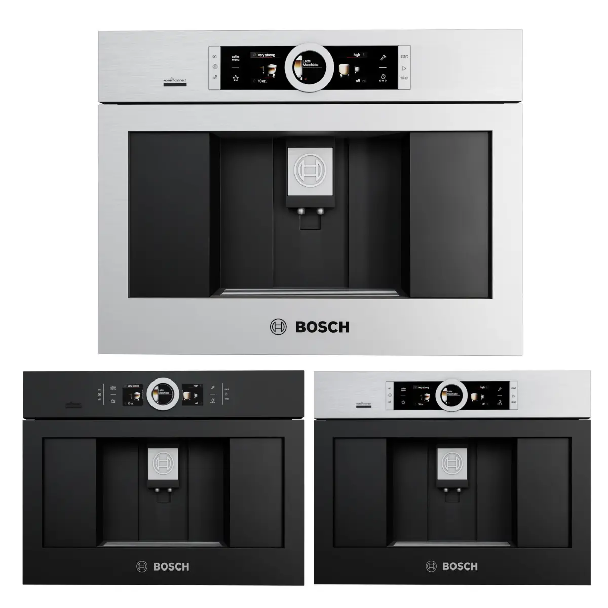 coffeemaker collection contains 4 build in coffeemaker in black and gray colorNeff, Miele, electrolux, Boschpolys: 76686verts: 78404