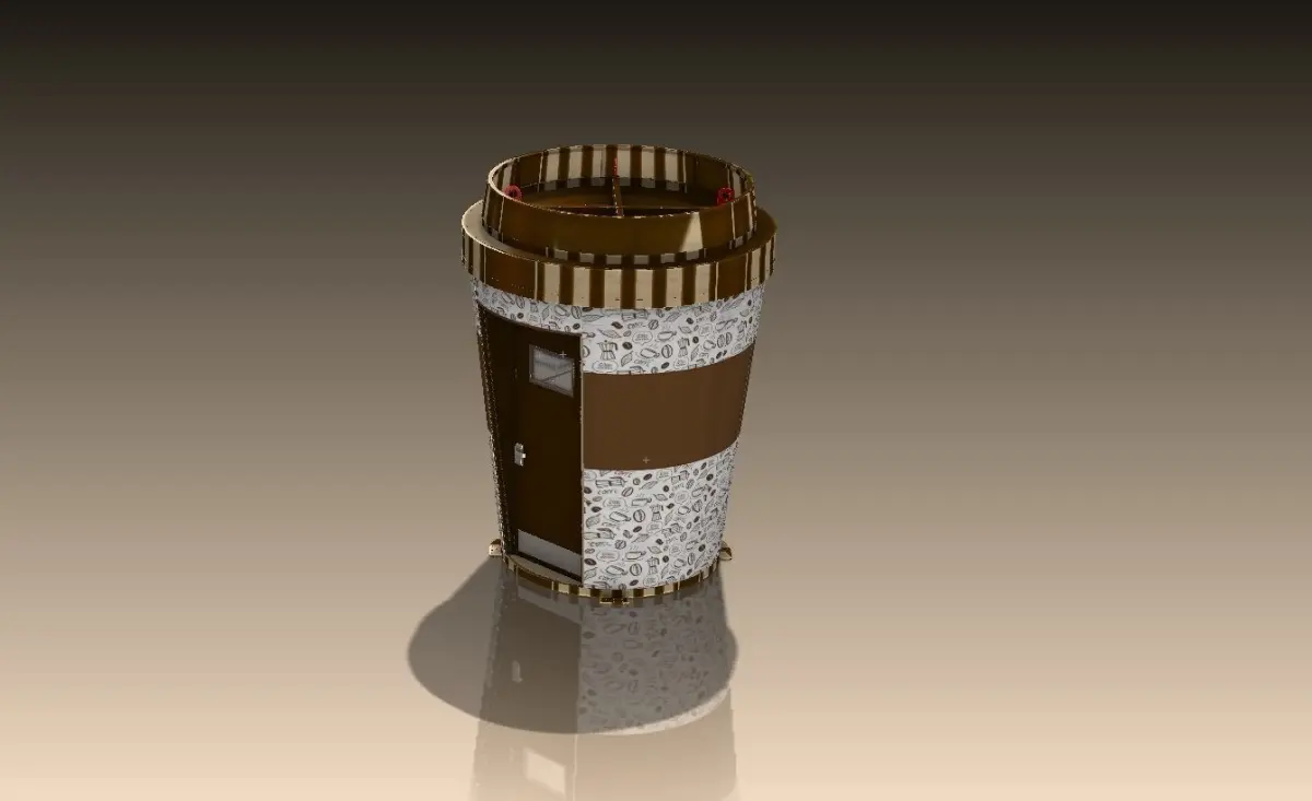 Coffeeshop Booth Cup 3D model for street as small project Aluminum Metal 3D modelCreated in Solidworks 2018with models Autocad Dimensions And Full Parts WinRAR file has contain full parts and dimensions