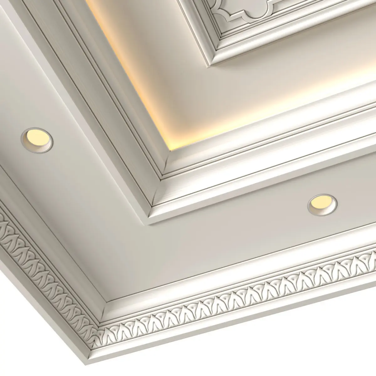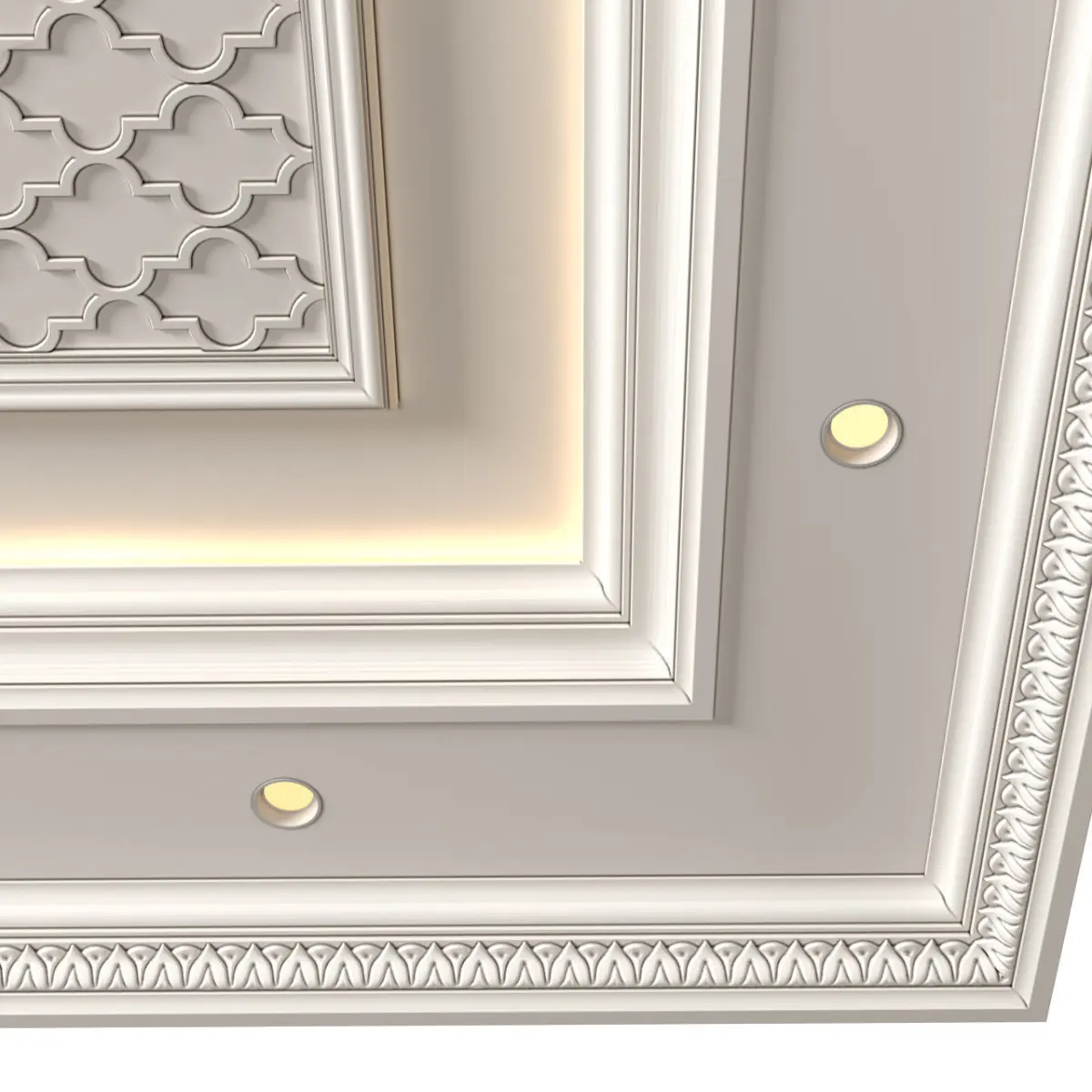 Modern oriental classic coffered ceiling in white with backlightDecorative Arabic Ceiling coffers TileArabic Ceiling setCoffers Ceiling