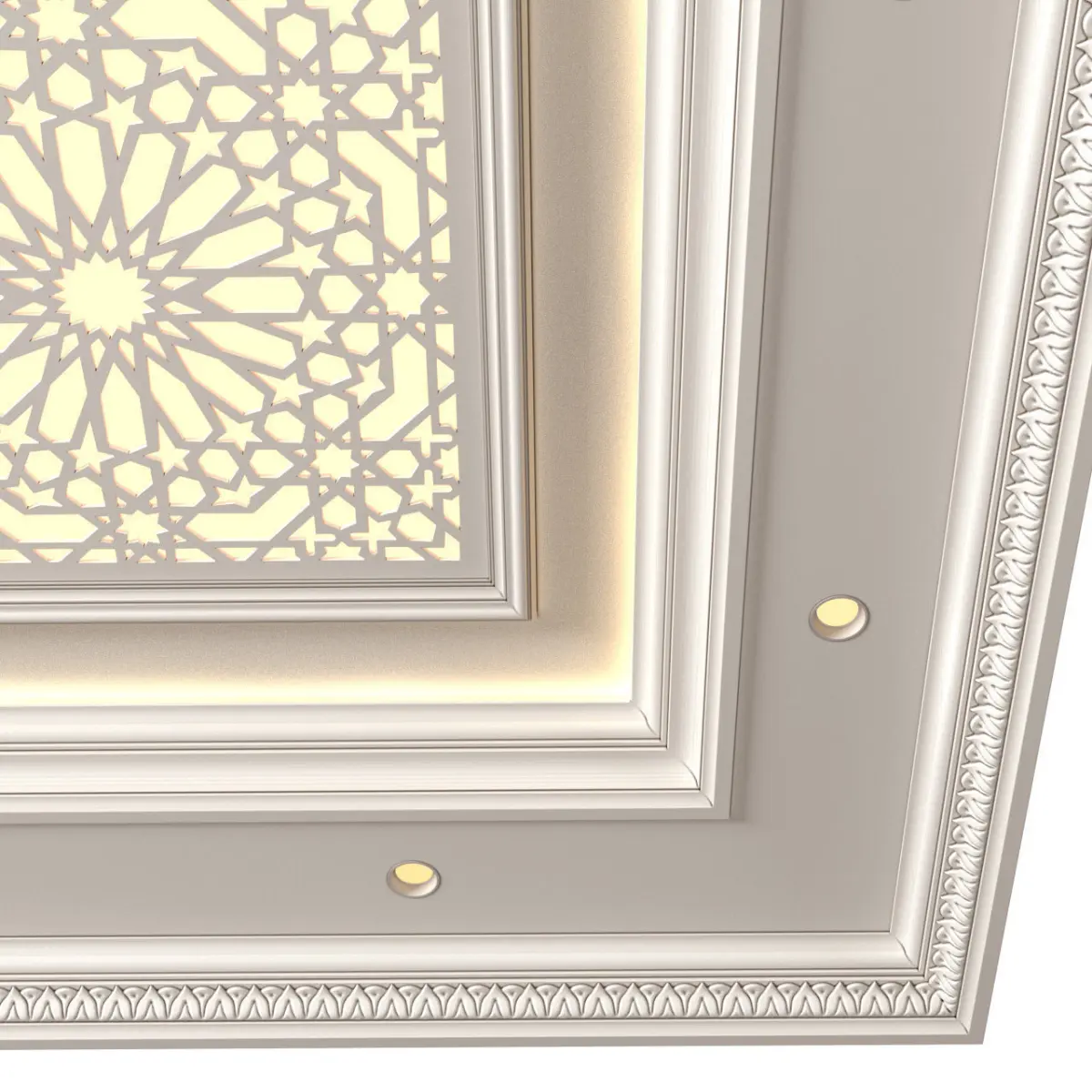 Modern oriental classic coffered ceiling in white with backlightDecorative Arabic Ceiling coffers TileArabic Ceiling setCoffers CeilingOriental coffered illuminated ceilingislamic patternEastern Ceiling