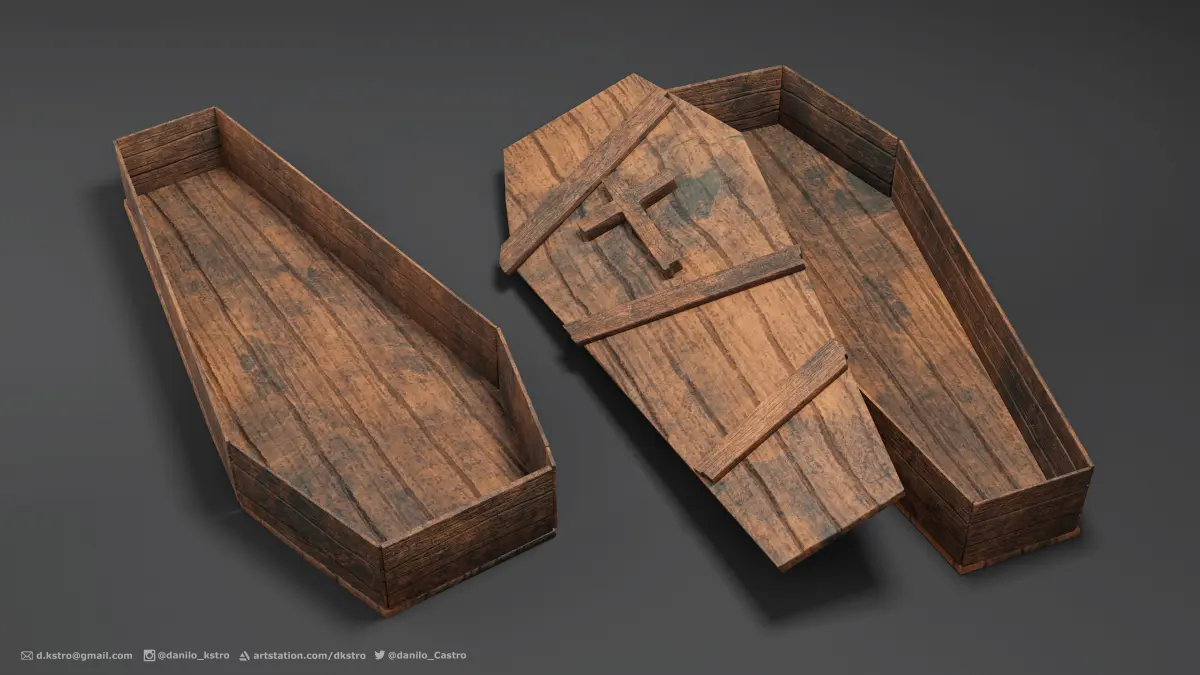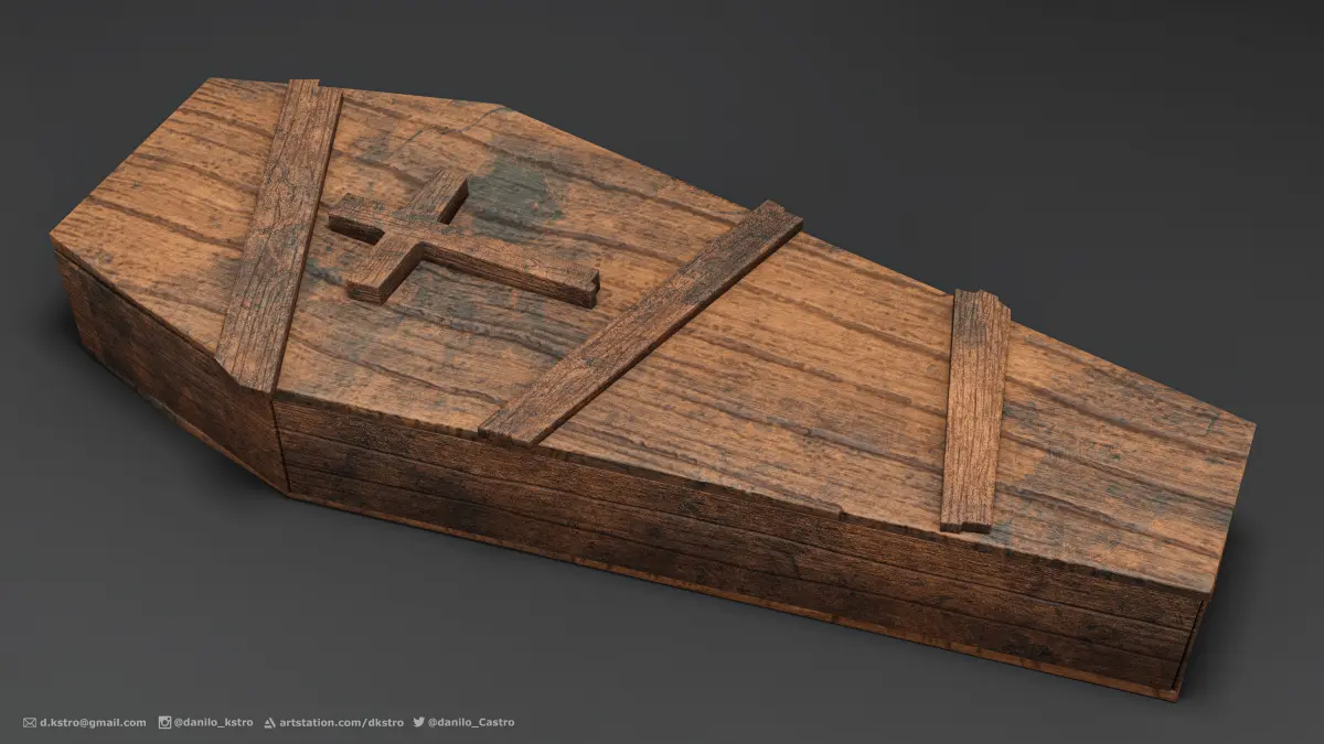 Stylized casket, all made of wood. Model made for use in games, low polygon count.