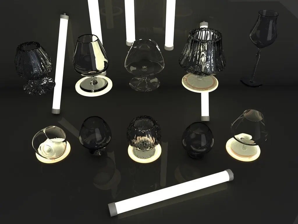 - All materials/textures - are INCLUDED! + named(LOGICALLY) for easy changes. (+ different glass materials!) (+cool glass lighting holders!)