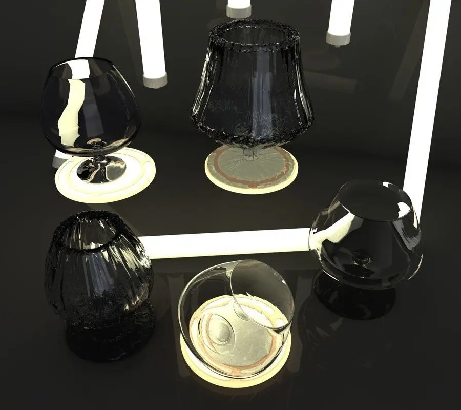 Elegant, royal 3D COGNAC BRANDY cocktail glasses black set - is created in Cinema4D: