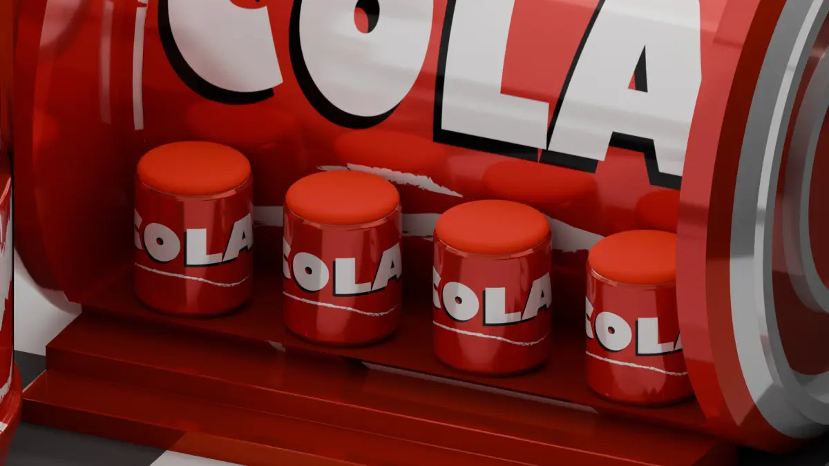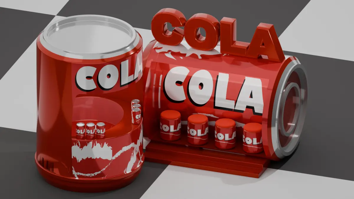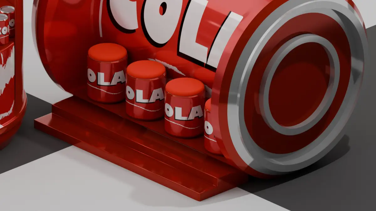 Cola is a drink that everyone knows well. It is a drink that gives you refreshment when you are tired. I have created a model of a booth selling Coca-Cola soft drinks that is unique and presented in an isometric style. The design features vibrant colors and bold lines to attract attention. The booth includes a menu board showcasing various Coca-Cola products and a display of ice-cold drinks ready for purchase.