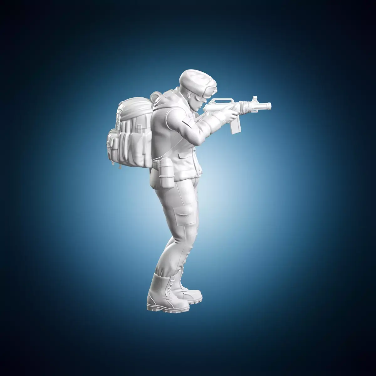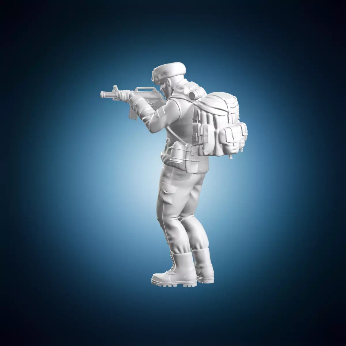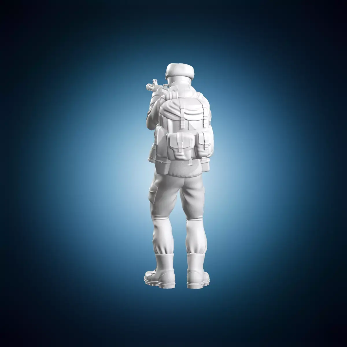 A highly detailed miniature 3D model of a Soviet soldier holding an AK-47 rifle from the Cold War era. This model is designed to be used in tabletop gaming or diorama scenes. The model features intricate details such as texture, clothing and accessories. It is created using 3ds Max and rendered with realistic lighting and shaders. Suitable for use in fantasy or historical settings. The model is suitable for a wide range of scales and can be easily scaled up or down to fit specific needs.