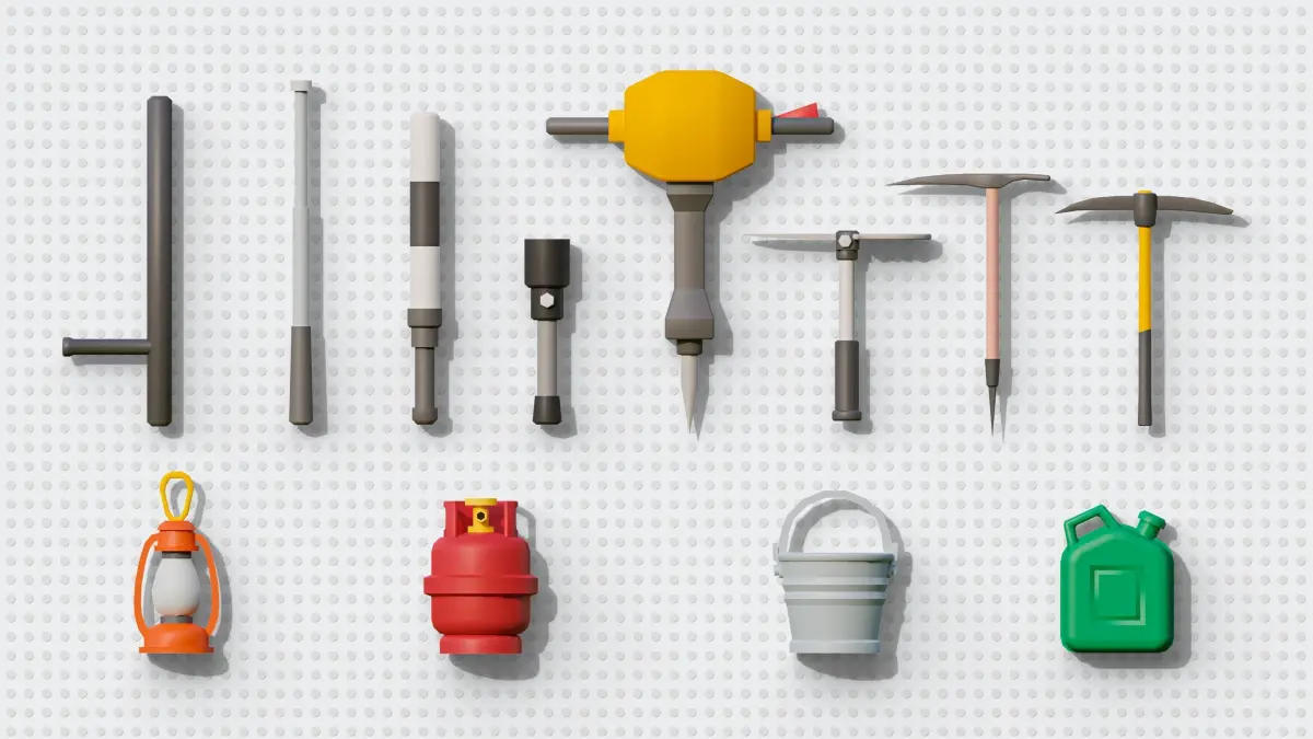 - Workshop Equipment (x10): Axe, hammer, pipe, scrap, spanner, wrench, tools, workshop gear, workshop pipe.
