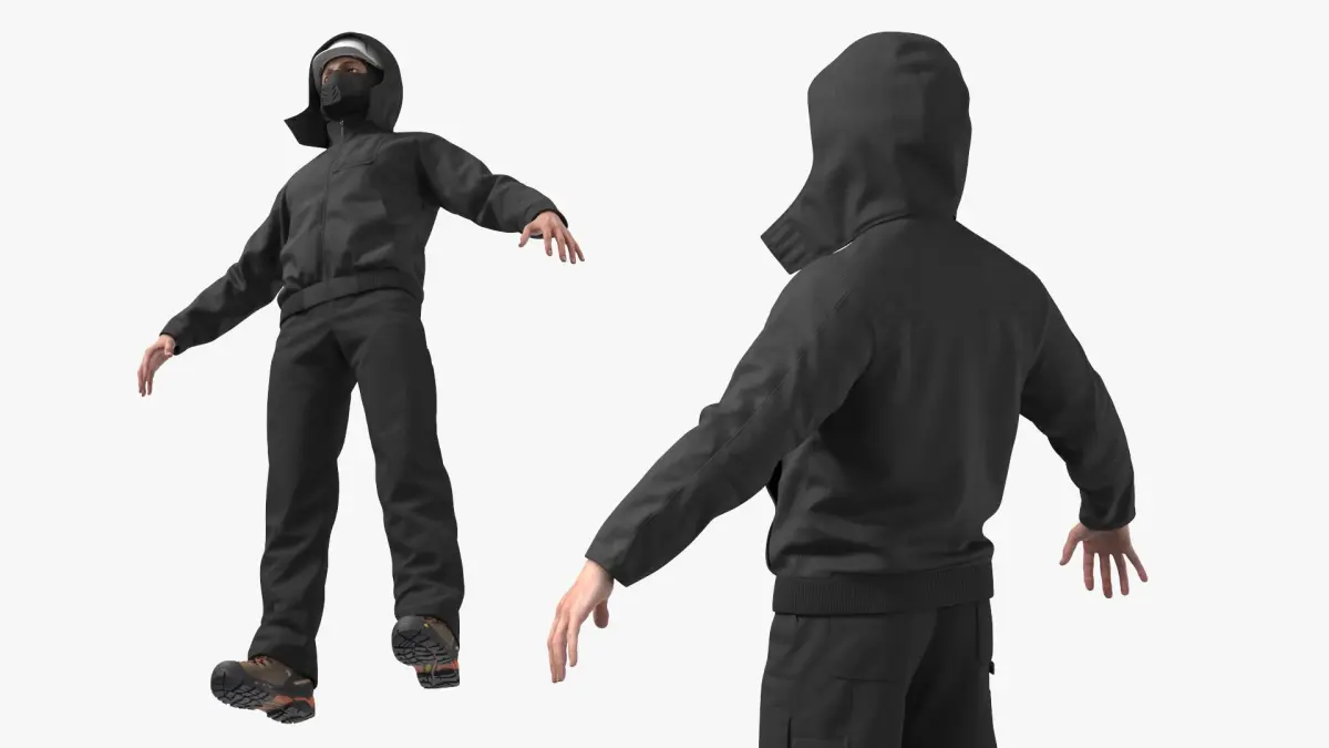 Cold Weather Work Outfit on Man Black is a high quality, photo real 3d model that will enhance detail and realism to any of your rendering projects. The model has a fully textured, detailed design that allows for close-up renders, and was originally modeled in 3ds Max 2020 and rendered with V-Ray. Renders have no postprocessing!