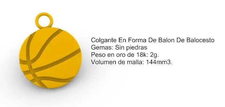 Basketball Ball Shaped PendantGems: No stonesWeight in 18k gold: 2g.Mesh volume: 144mm3.