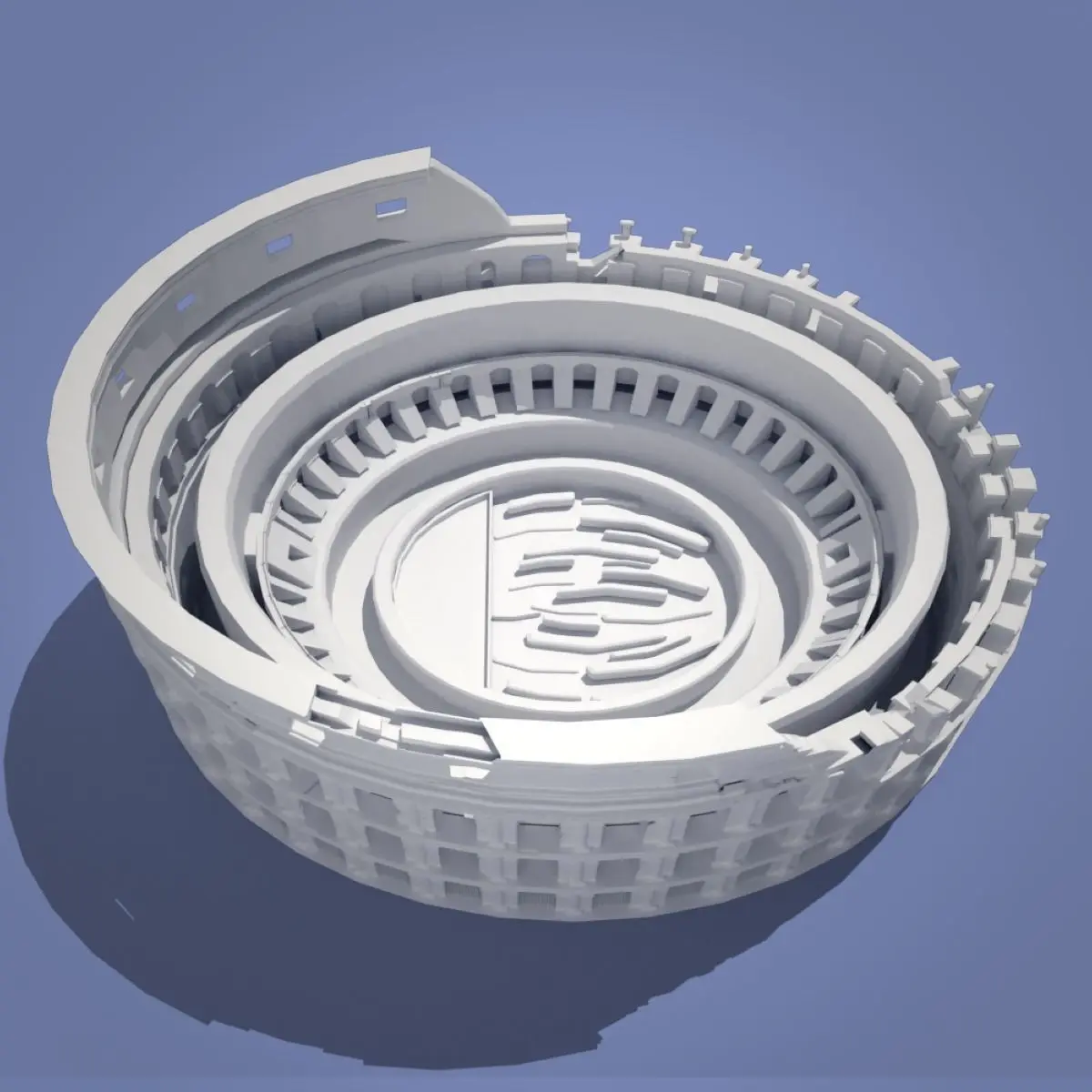 The Colosseum is one of the most famous landmarks in the world. It was partially ruined because of earthquake damage and pillaging for building materials.