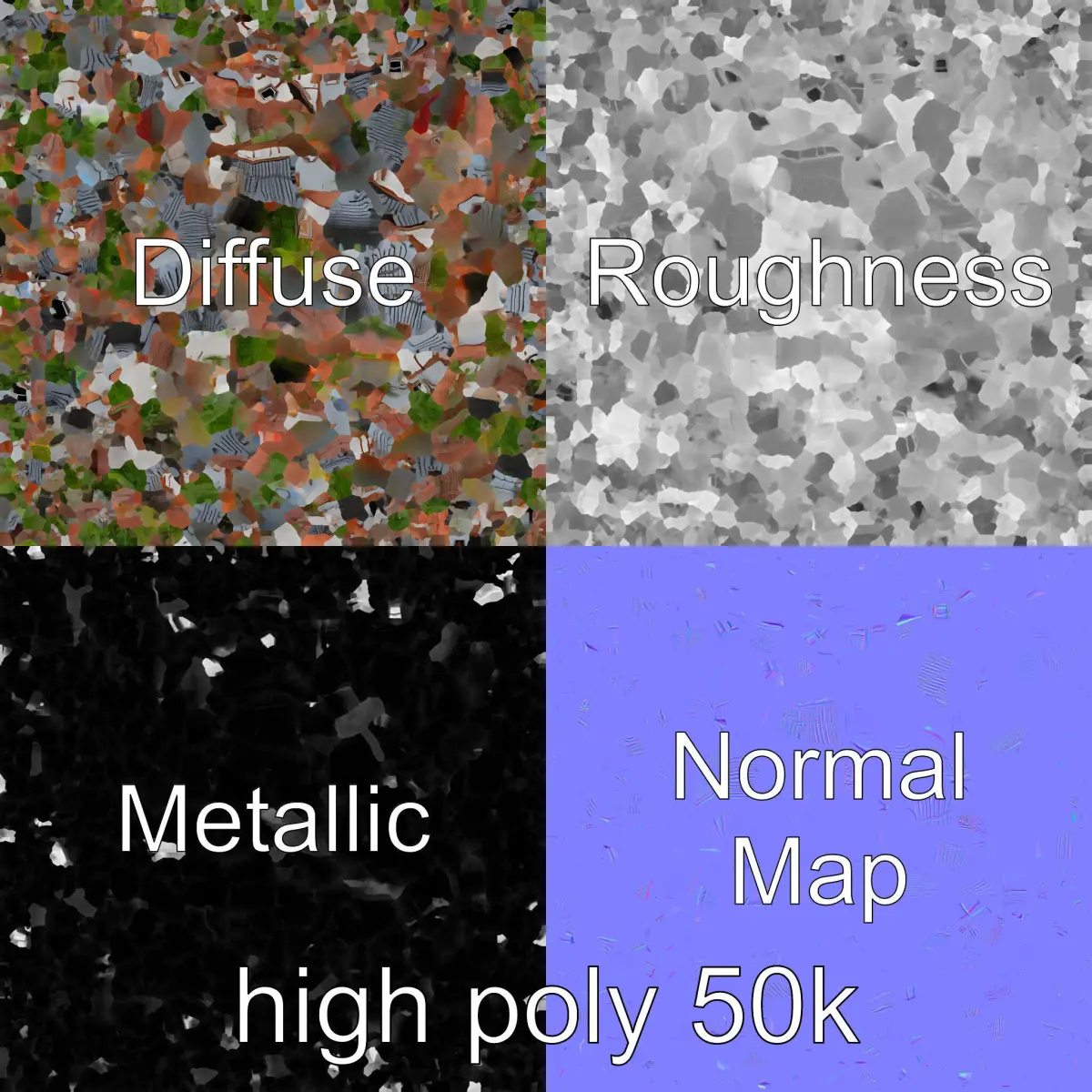 The model's textures are PBR, Diffuse, NormalMap, and reflection/roughness/metallic, which are suitable for any modern rendering engine. All models are accurately unwrapped and have no overlapping UV. All textures are 4096*4096 in size.