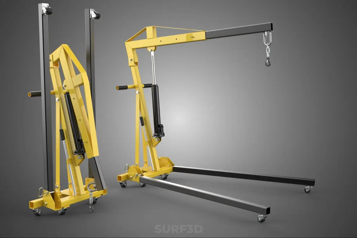 A collapsible hydraulic engine crane, also widely known as a folding engine crane, foldable engine hoist, shop crane, or cherry picker, is a specialized piece of mobile lifting equipment designed primarily for the safe and controlled removal, installation, and relocation of internal combustion engines, transmissions, and other heavy components within vehicles. Its defining characteristic is its ability to be folded or collapsed into a significantly smaller form factor when not in use, facilitating easier storage and transport compared to fixed or rigid-frame engine cranes.
