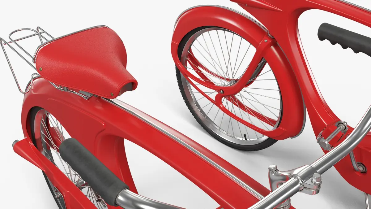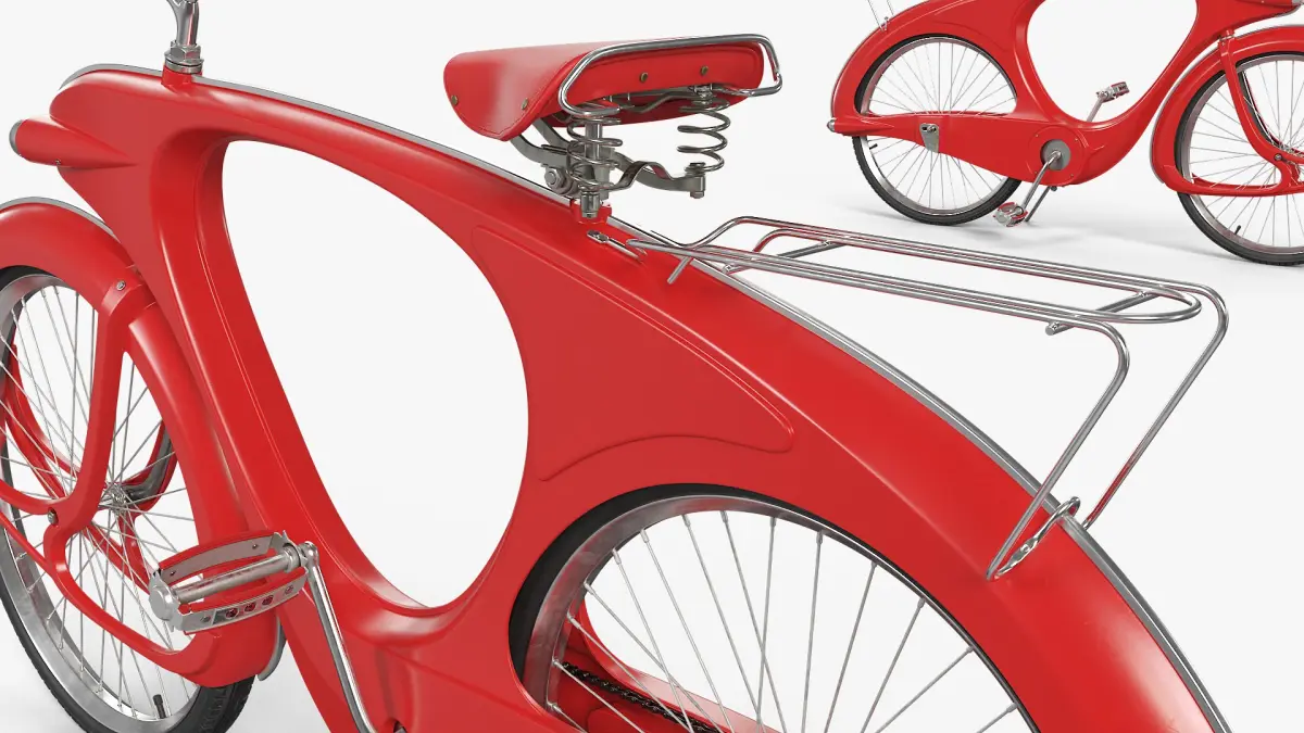 Collectible Retro Cruiser Bicycle Red Rigged for Cinema 4D is a three-dimensional model of futuristic style, retro, conceptual design bike.