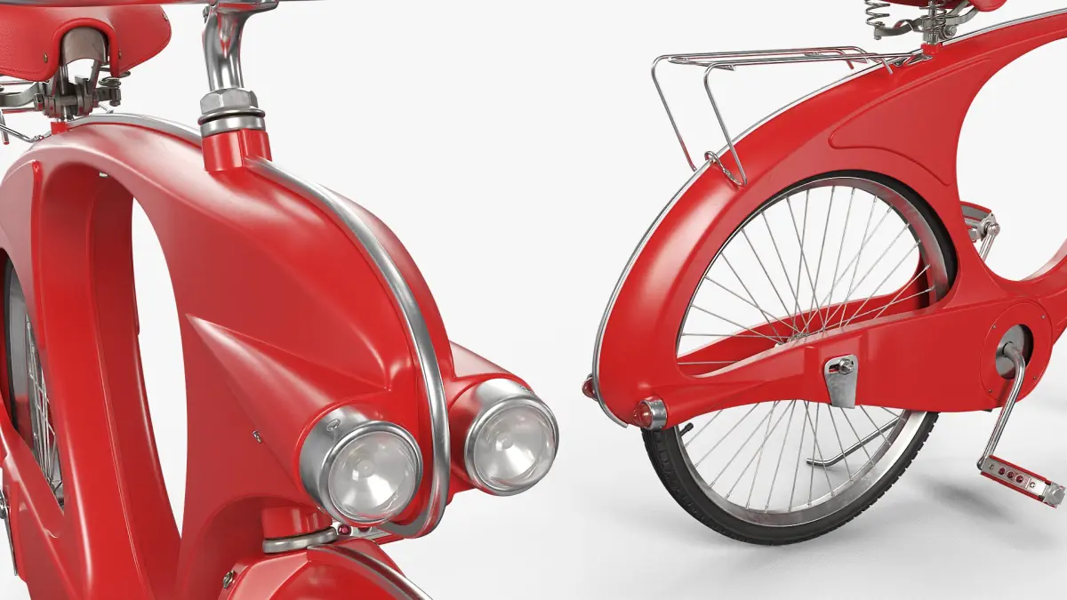 For cycling history studies, industrial design history, vintage vehicle exhibitions, museum collections, retro art showcases, transportation design education, collectible displays, and futuristic concept design presentations.