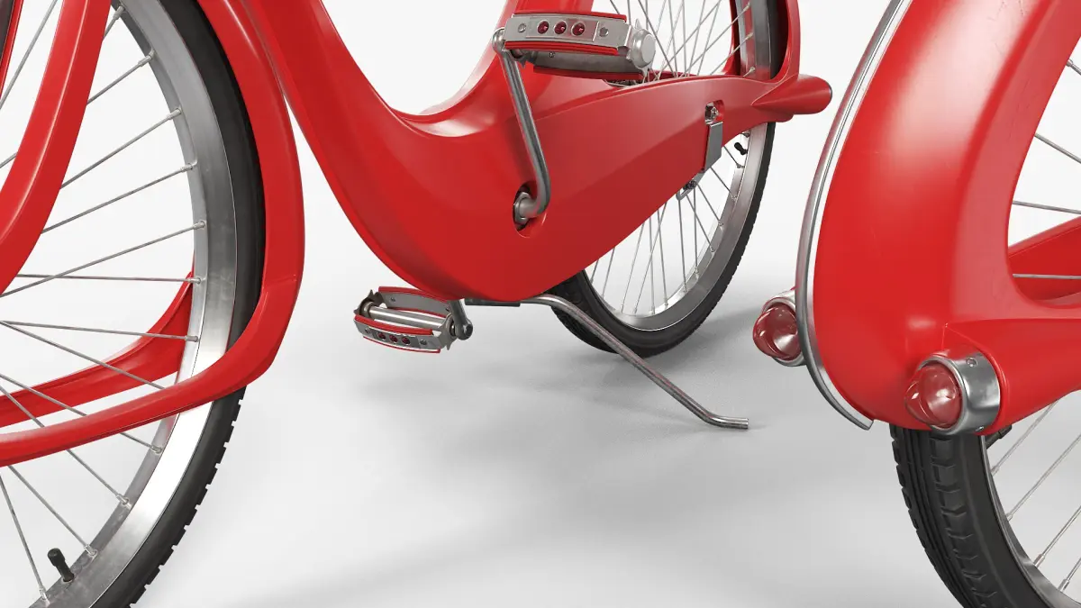 Collectible Retro Cruiser Bicycle Red Rigged for Maya is fully rigged and is ready to be animated in Maya. You can easily position it the way you need or animate it the way your project requires. See the screenshots to get an idea of how rigging works. The pose of the model on the render images is an example and can be recreated using rig, it is not initially included into the product.