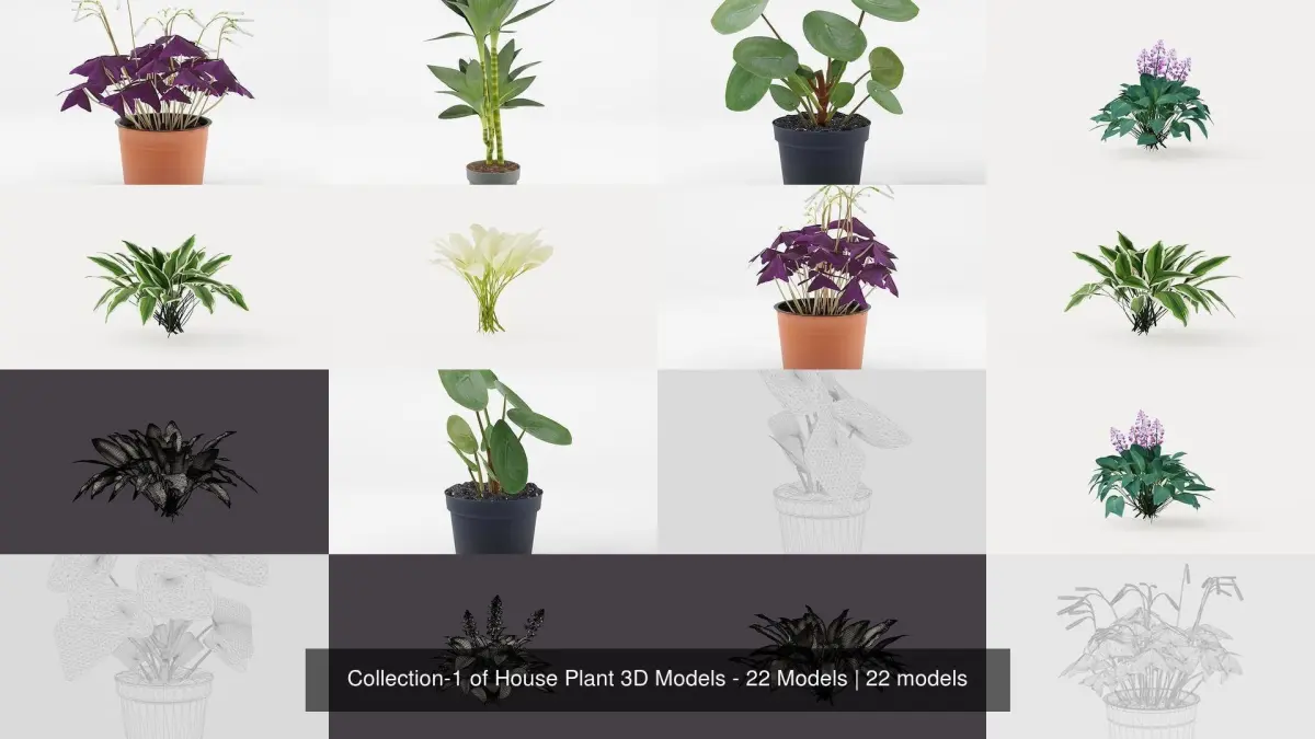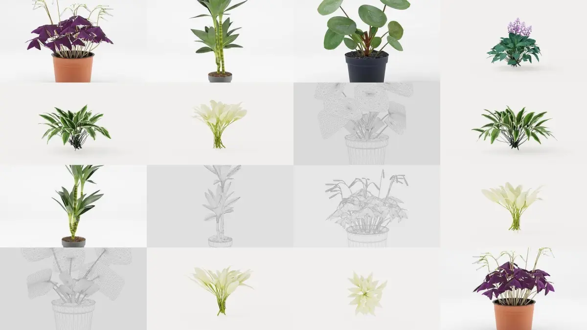 Botanical Diversity: Our collection showcases an extensive variety of house plant models, from classic potted plants to exotic species. Each plant is meticulously detailed and textured, capturing the natural charm and beauty of indoor greenery.