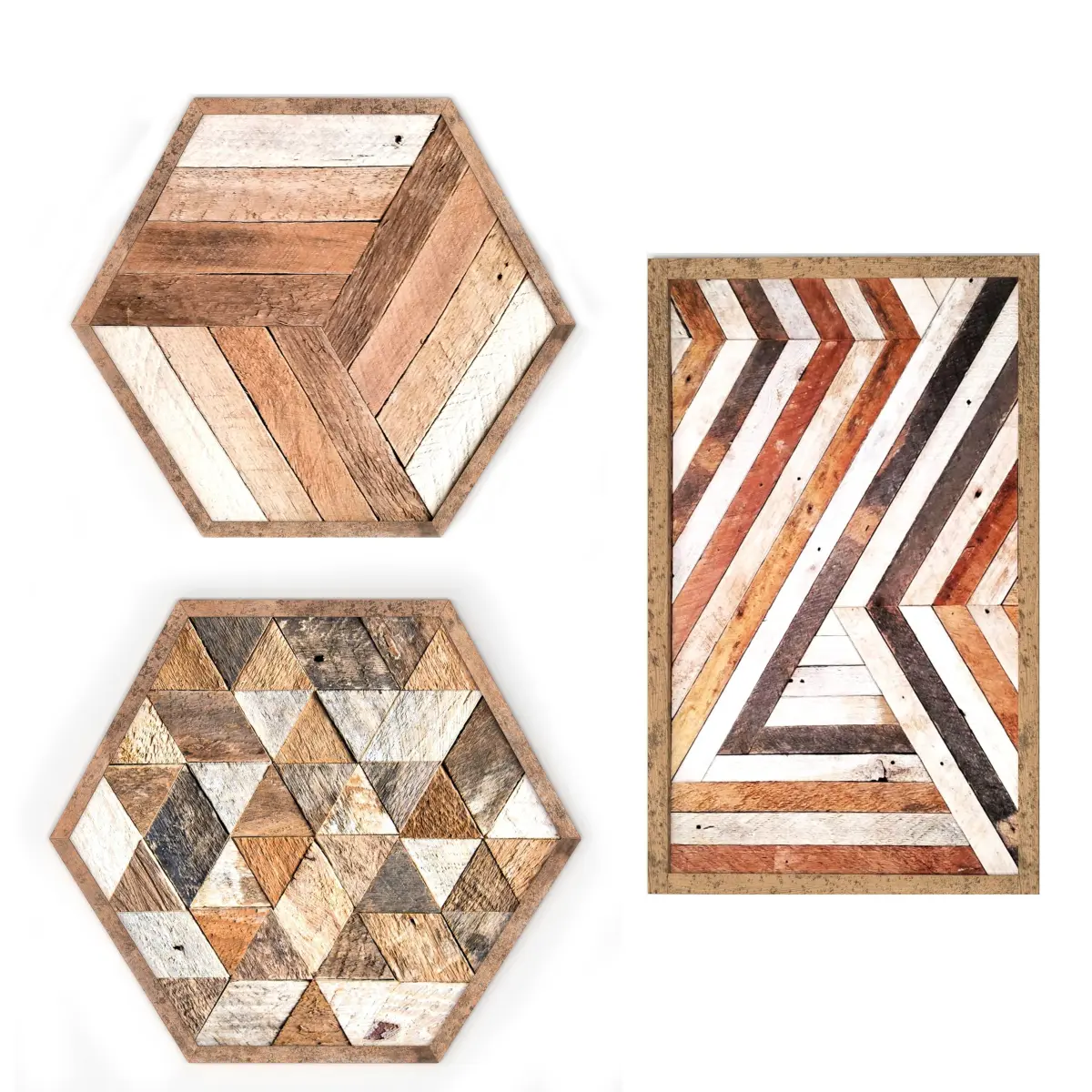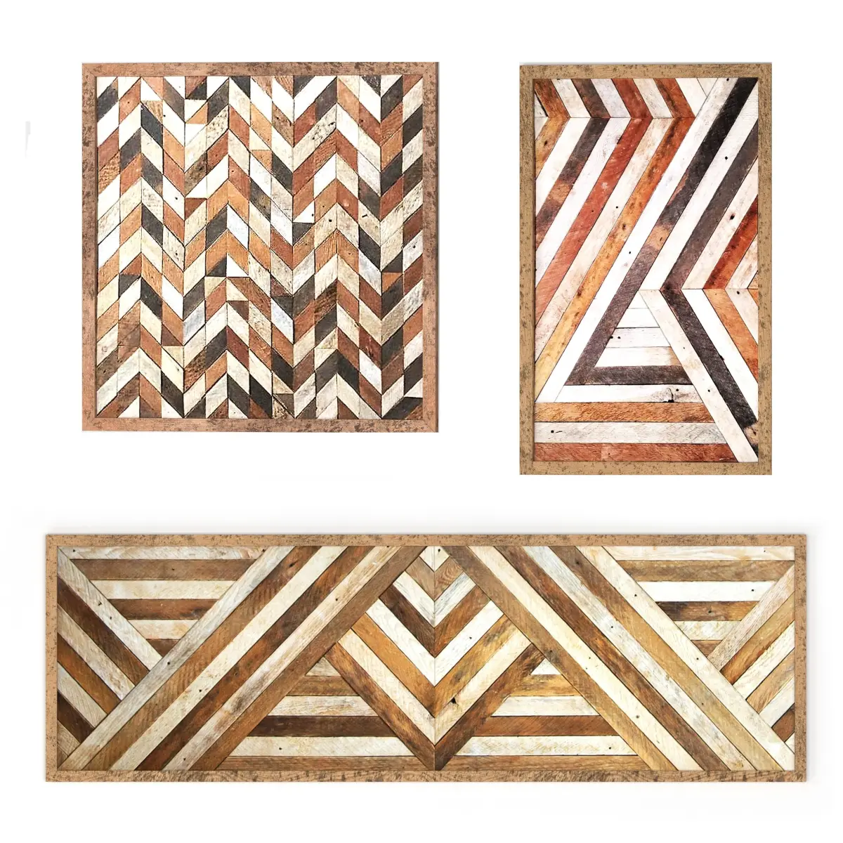Wall wood inlay from Eleventy One Studio. 6 panels. Suitable premises: living room, study, bedroom. Suitable styles: loft, ethnic, ecological, industrial.