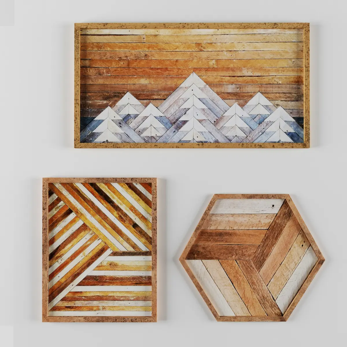 collection 12 model of wood wall work scandinavian rustic frame 3D model