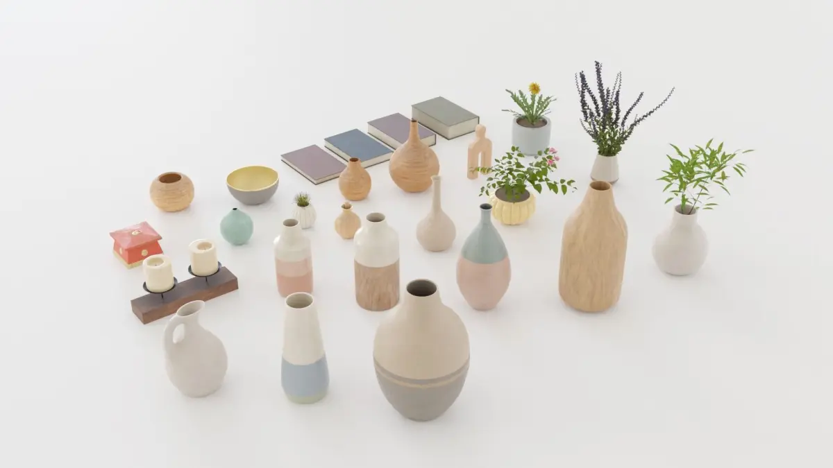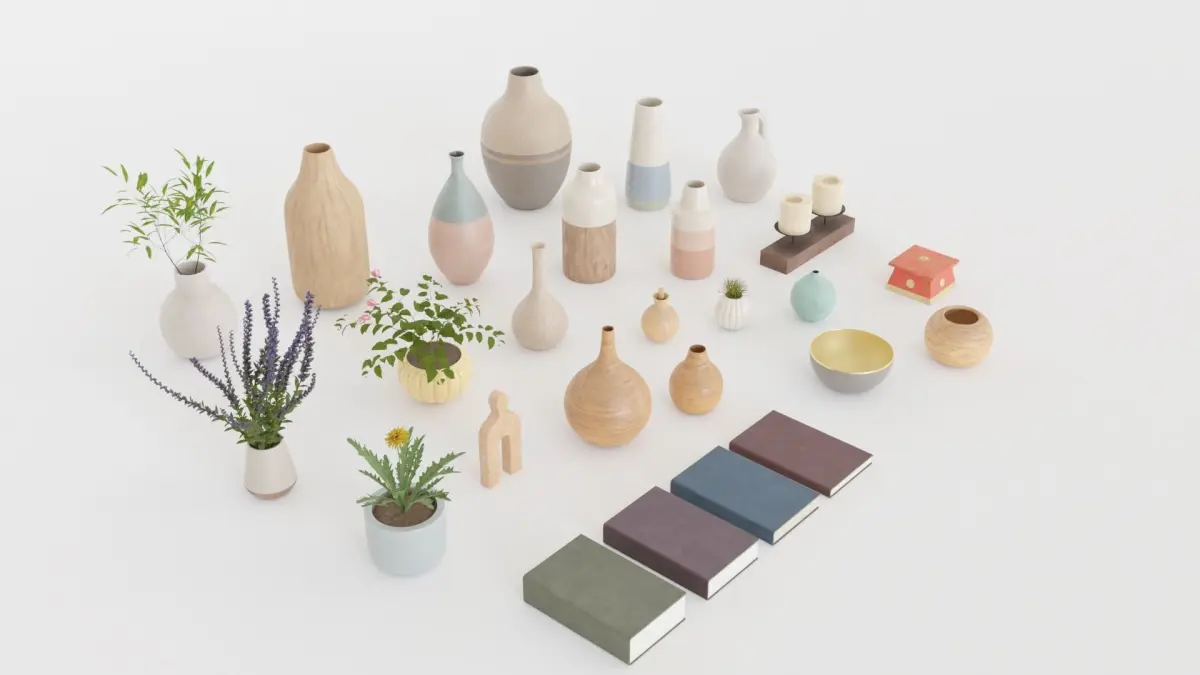 We present our exclusive pack of 31 decorative Objects, ideal for enhancing the virtual interiors of your architectural projects. This set includes a variety of vases, pots, candles, bowls, plants, books, and more. Enhance your designs with these carefully selected details to add style and elegance to any space.