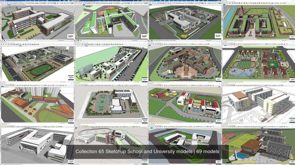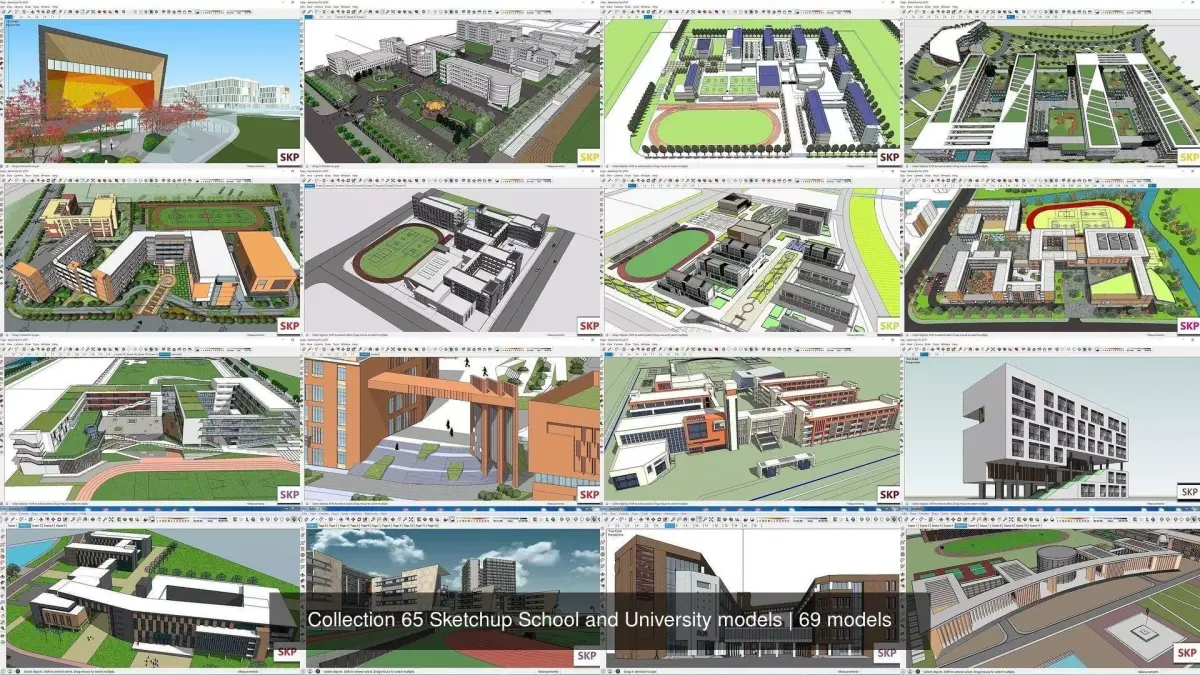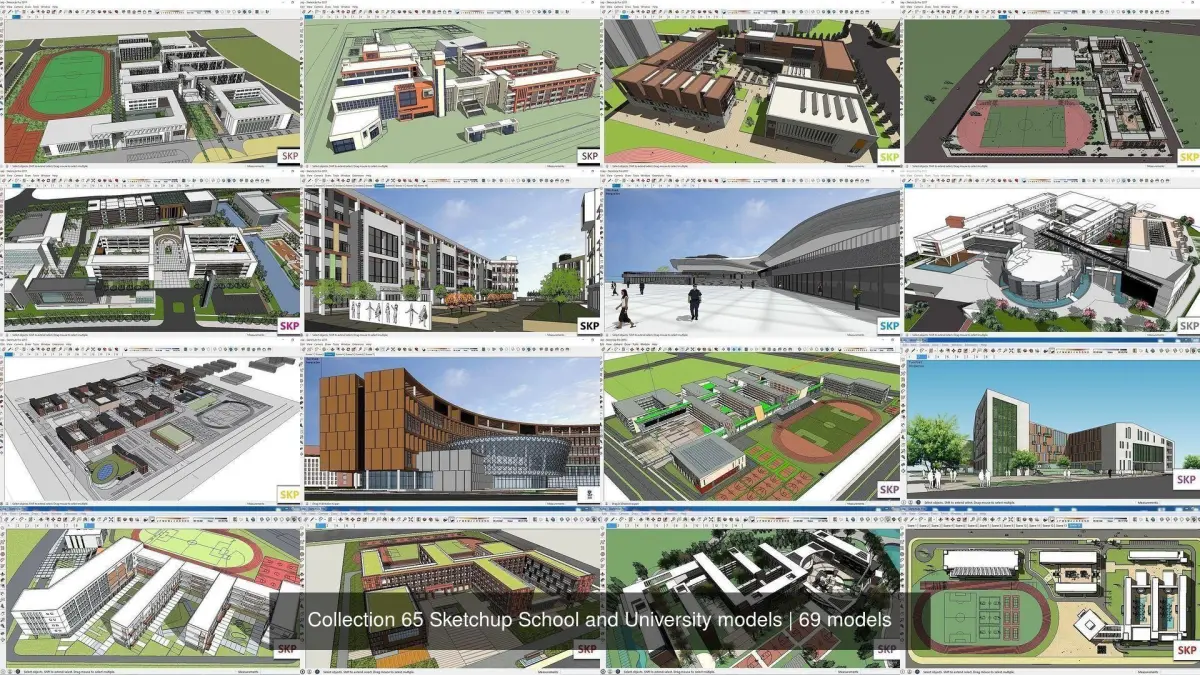 Collection Sketchup School and University models ... 65 Model Sketchup. These items cost $1200 ... version : sketchup 8 to up . 3D Sketchup Models made with Sketchup and can be used and edited in Sketchup version 8 and above (sketchup 2017 , 2018 , 2019 , 2020 , 2021 , 2022 and more) . You can use these external models of Sketchup architecture in your work or training or renderings. These models does not have an AutoCAD plan and is just a Sketchup file . tags : collection pack package group sketchup skp 3d 3dmodel architecture architectural external exterior sketchup2022 cgtrader cg game model project building Cultural museum gallery center Office School University