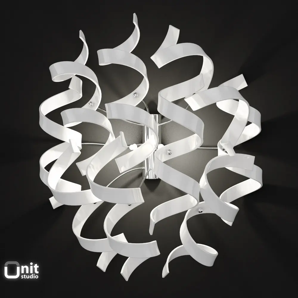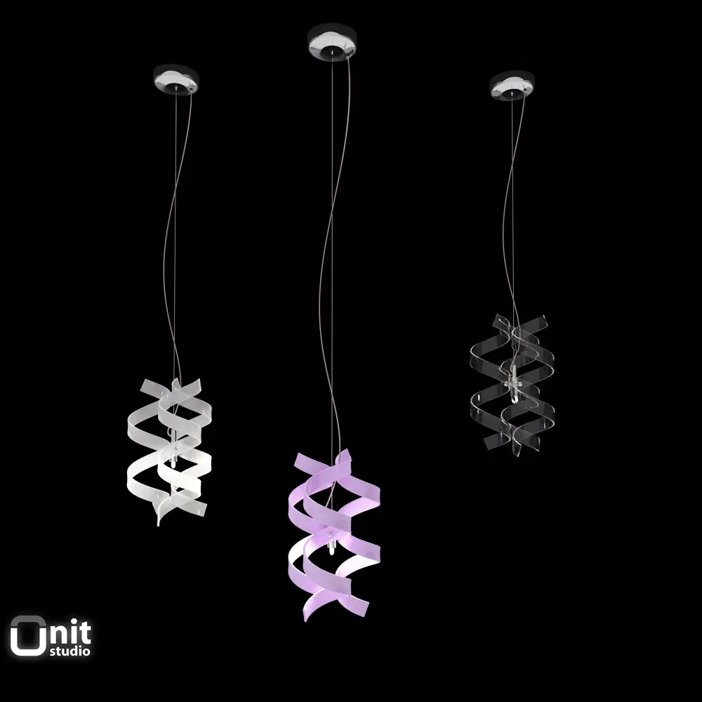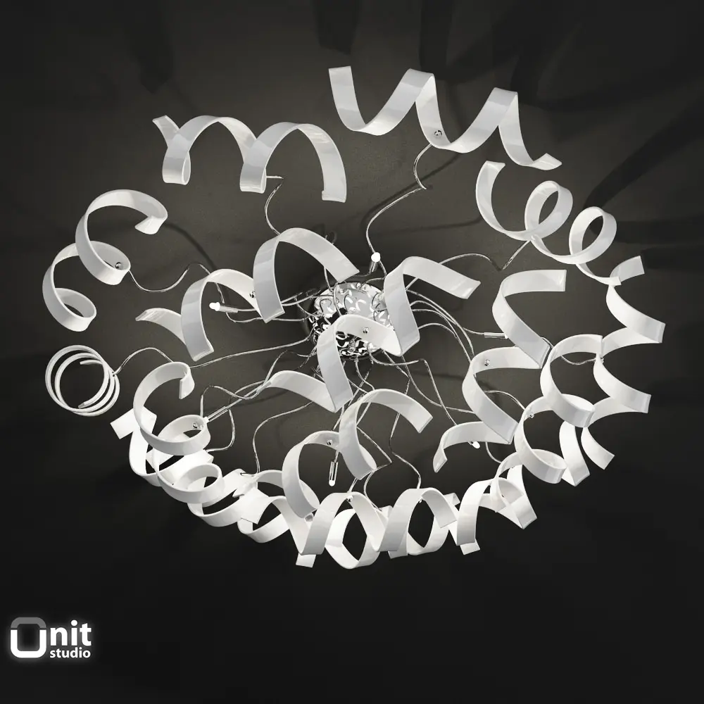 Collection of 7 decorative lighting appliances from the Astro series by MetalLux made of glass curls and polished metal structure:
