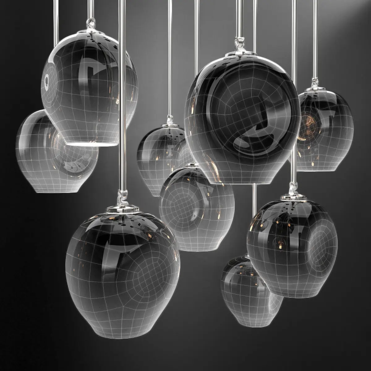 The model is made under smoothing, so you can control the density of the grid for a particular frame. The smoothing modifier is enabled (display in the viewport - 0 iterations, on the render 1 iteration).