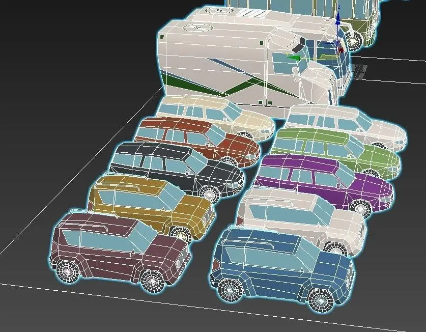 HomeCatalogcollection cars different colored and trucks Low-poly 3D model