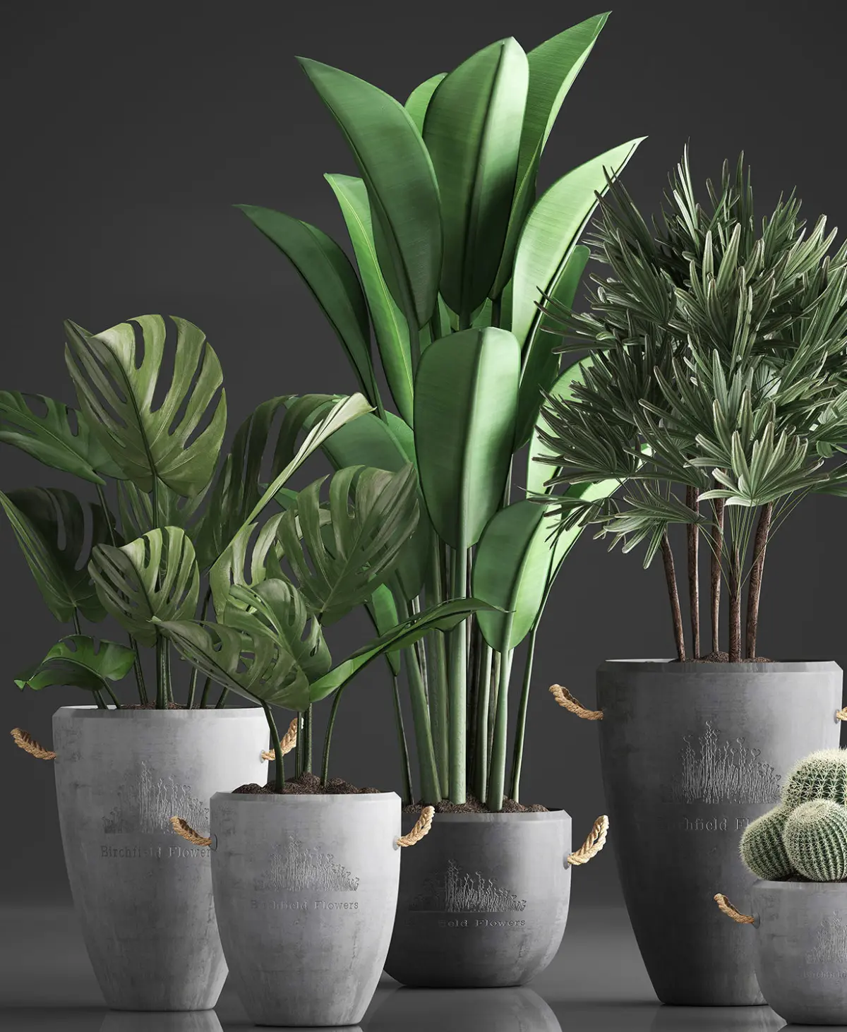 HouseplantsHouseplants, exotic plantsCollection of ornamental plantsMonsteraBanana palmexoticPotted banana palmRavenalaMonsteraRavenala madagascariensisRaphis palmRhapis excelsaRapisEchinocactus