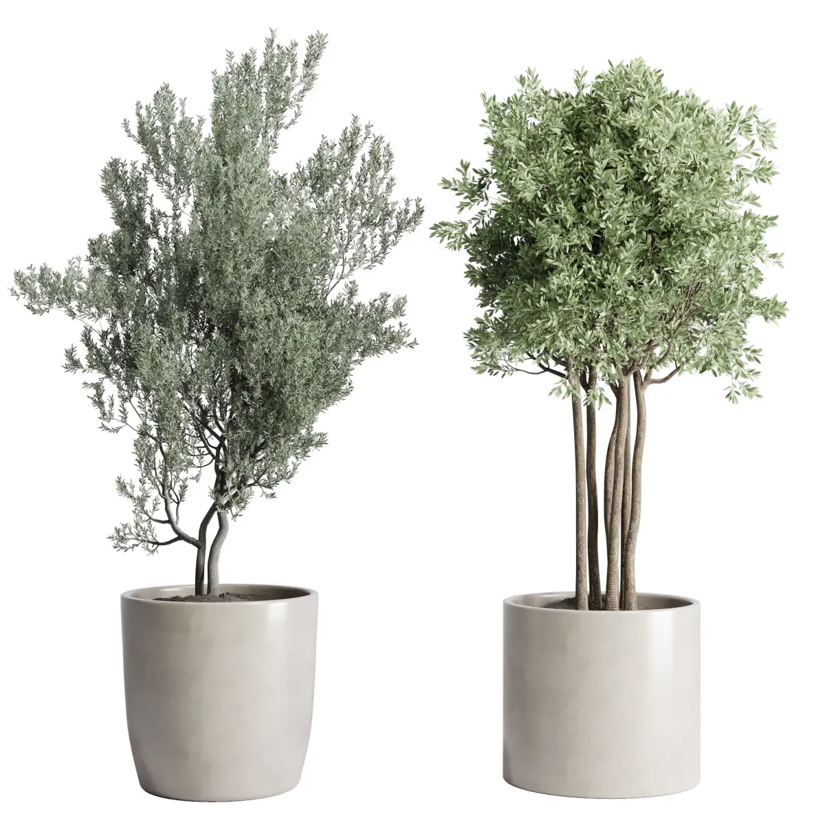 Collection indoor plant cactus olive palm concrete dirt vase 3D model