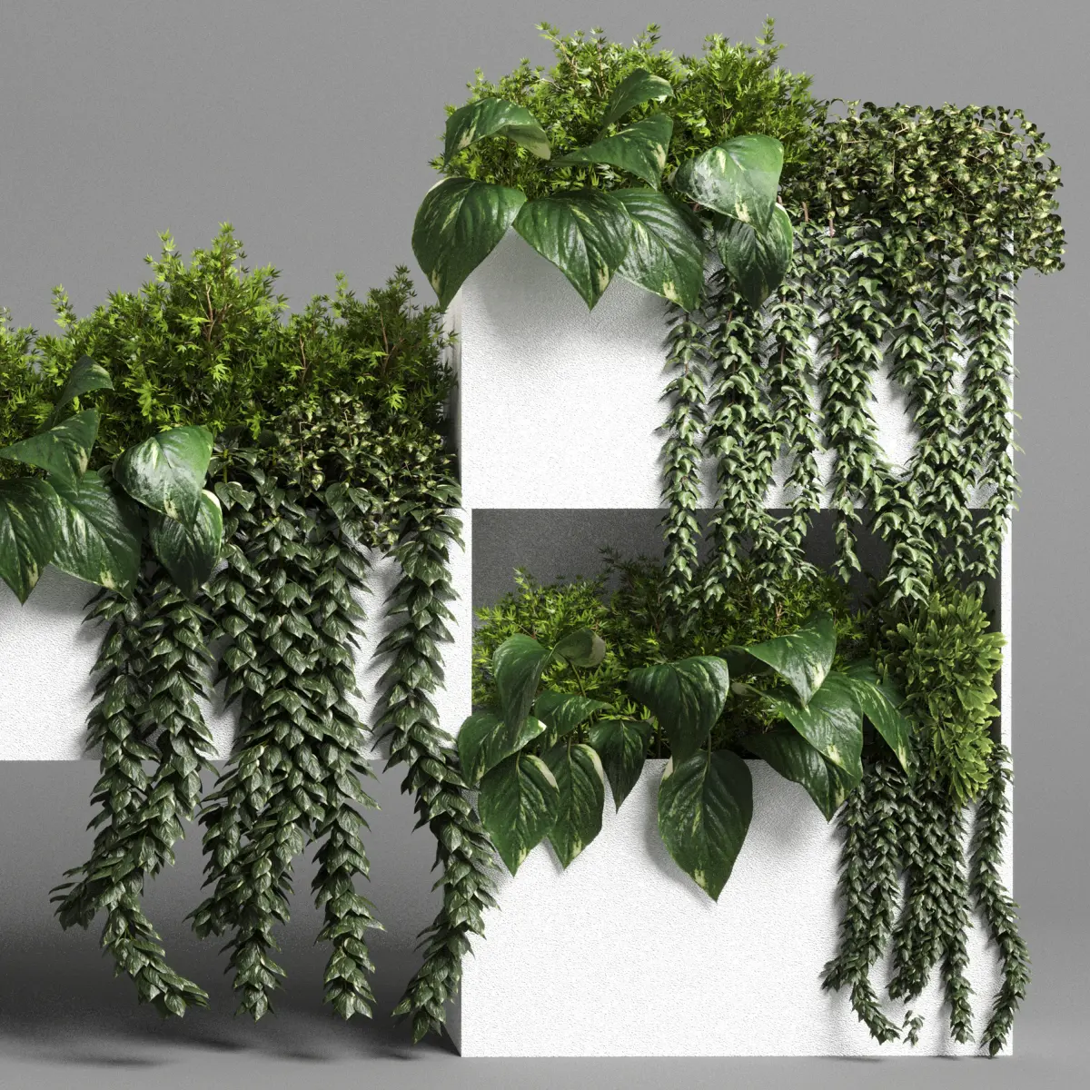 HomeCatalogCollection Indoor plant-plant stand white concrete vase set 05 Low-poly 3D model