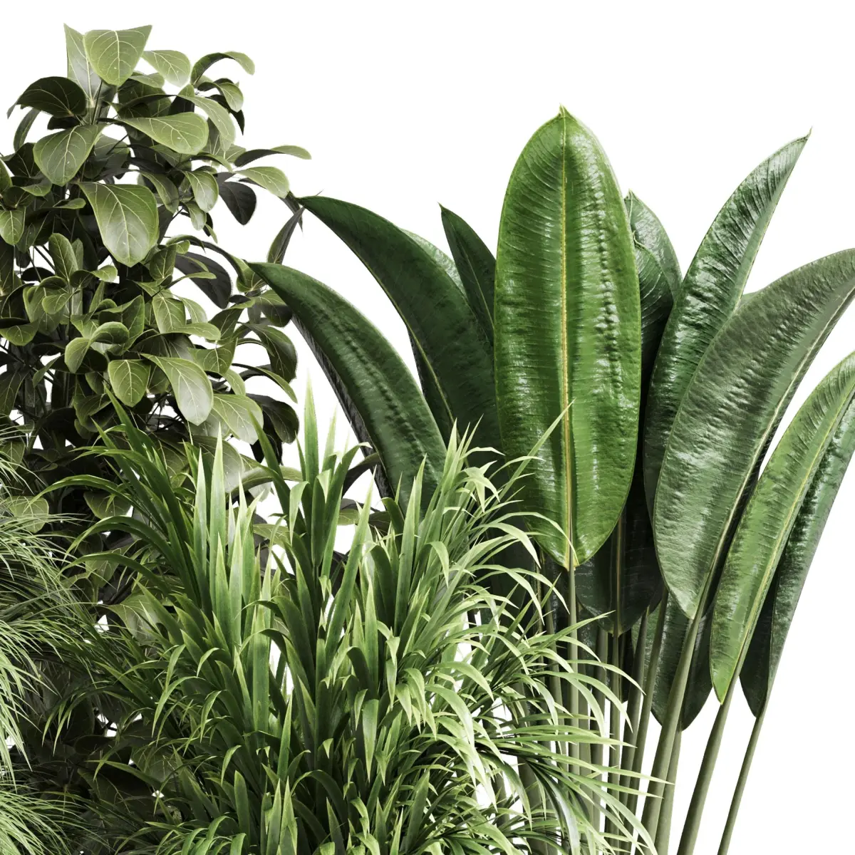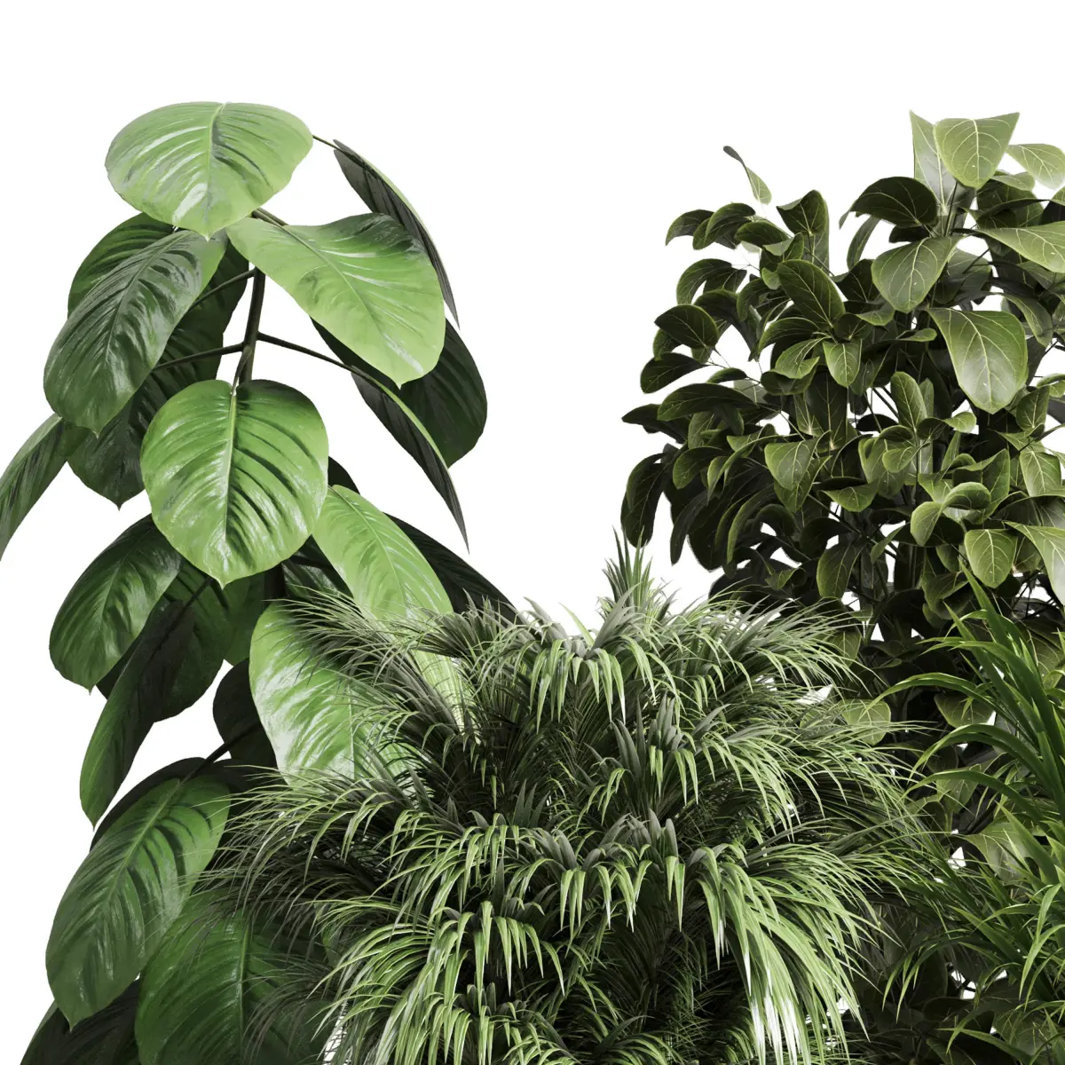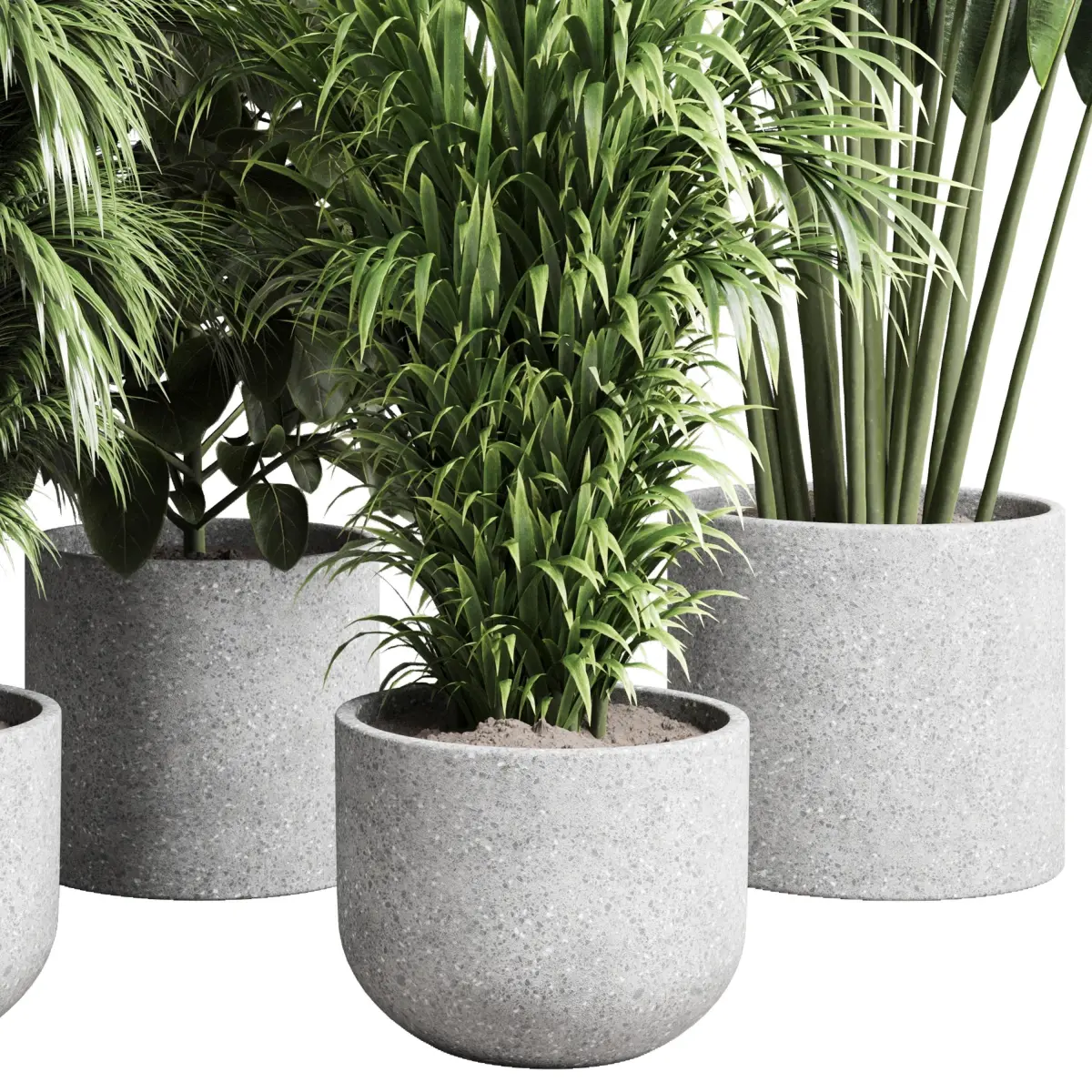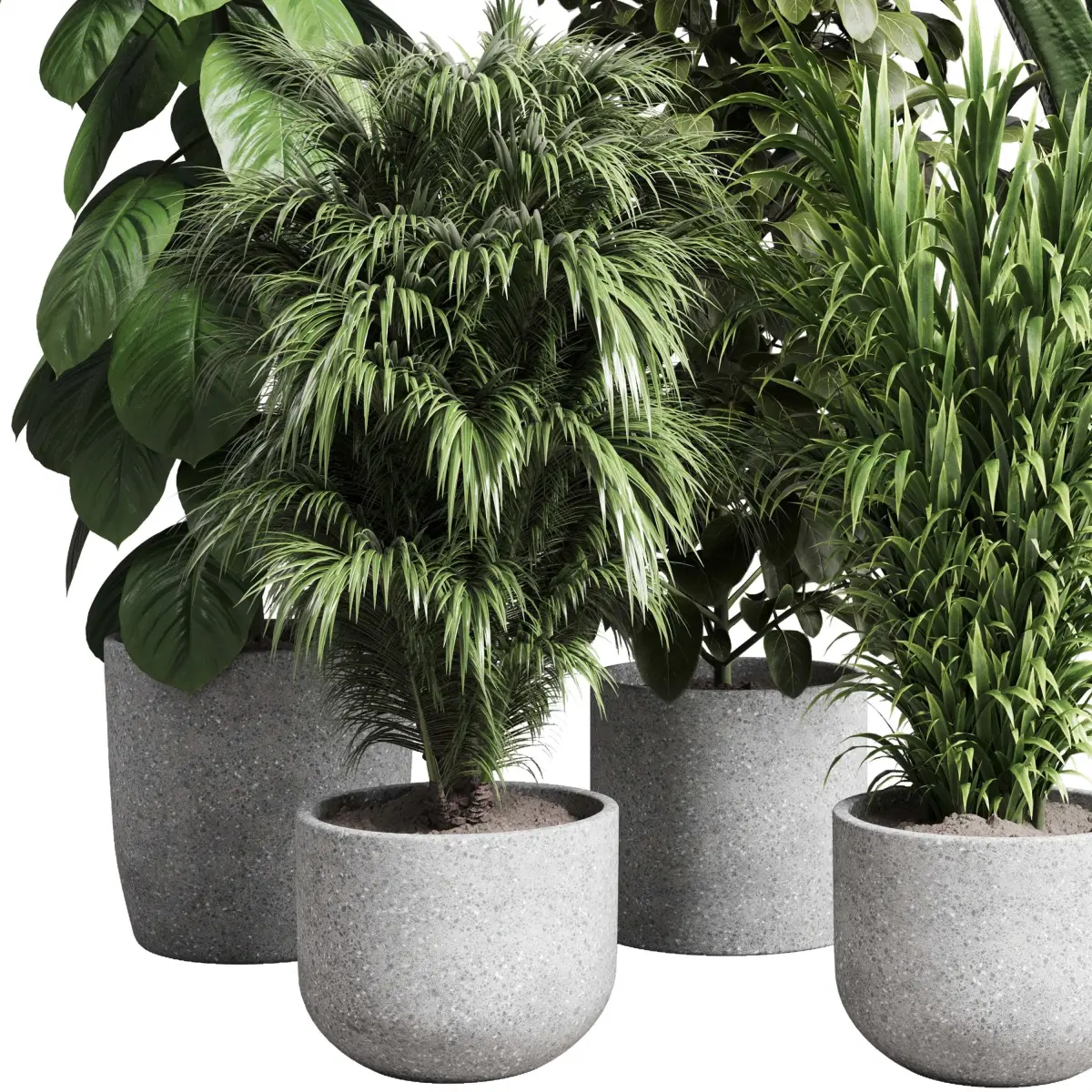 Collection indoor pot plant ficus rubbery palm concrete vase 3D model