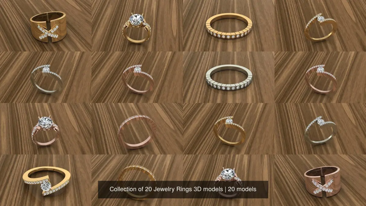 We are happy to present you 20 Jewelry Ring 3d print model with Render Pictures and Report. Feel free to contact us for any kind of information you need about the models. We can do animation of any model. We have many more models of all Jewelry kinds that we are publishing in time. More info about this model down below: