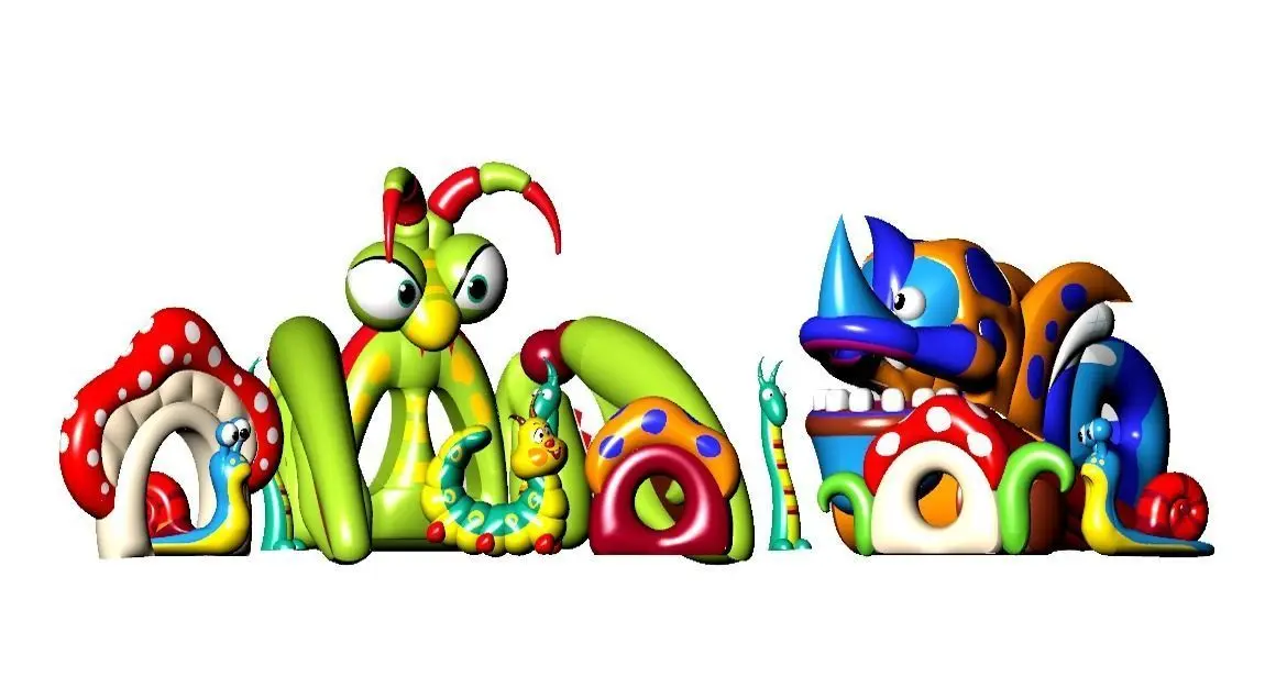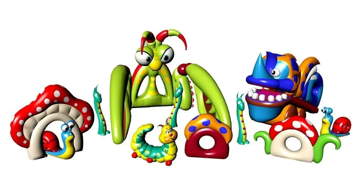 Models are created for the manufacture of children's inflatable attractions. In connection with the production technology, the models are divided into separate objects according to the color of the material. In exported models, the mesh of nearby objects may not match. The file contains the scene to render.