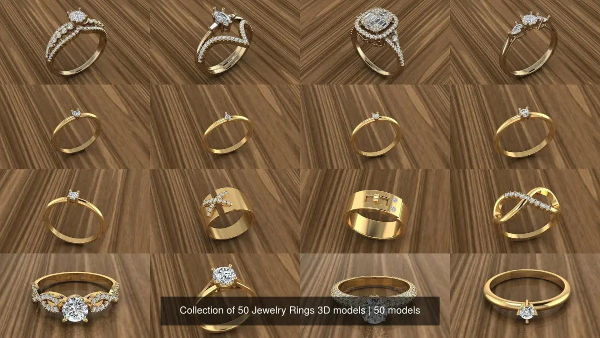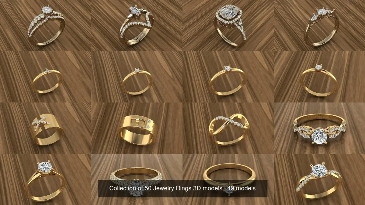 Collection of 50 Jewelry Rings 3D models